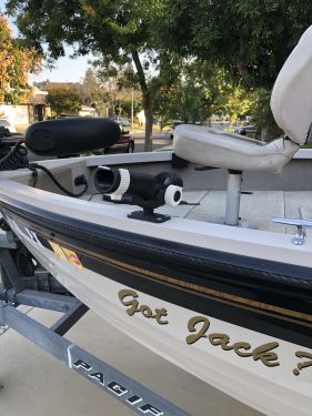 Additionally, 2008 12 volt electric Minn Kota Terrova wireless GPS trolling system. Steer by pedal or remote unit attached to wrist. Powered by two 12 volt batteries in parallel. Set a course and it follows that direction at any speed you set. A 2012 Hummingbird fish finder. Many functions including speed, depth, and direction. Also records and remembers fishing spots on a lake. NEW onboard 3 bank battery charger, which shows level of charge on all batteries, keep plugged in and maintains batteries. 3 batteries replaced October 2021. Bimini top, full boat cover, spare tire cover, windshield and dashboard cover, & engine cover. Galvanized Pacific trailer with easy loading sides and removable tongue for storage. Downrigger, 3 rod holders, 3 seats, stereo play from phone, CD's, AM, FM, 2 bumpers, 3 dock ropes, spare tire, locks for trailer, tire, & tongue. Just returned from Sierras with 6 trout 3.5 to 4.5 pounds.
