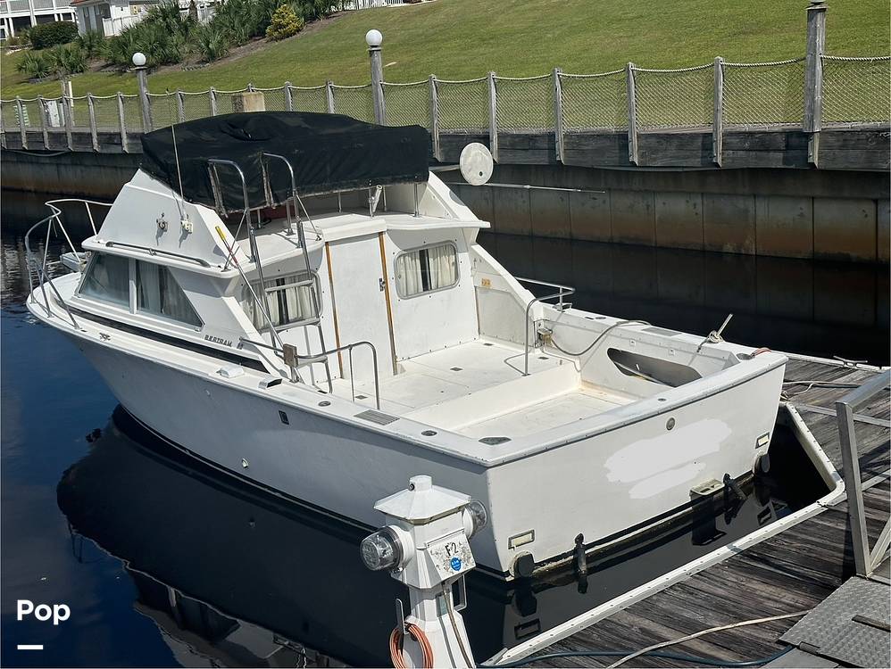 Measuring just over twenty-eight feet with an eleven-foot beam, this Bertram carries a wide, confident stance in the water. The deep-V hull design, famous for Bertram's offshore performance, slices through chop with ease. There's a generous cockpit that welcomes company and provides space for deck chairs or easy access to the water. Up top, the flybridge offers commanding visibility and that classic Bertram profile--sturdy, balanced, and unmistakably purposeful.