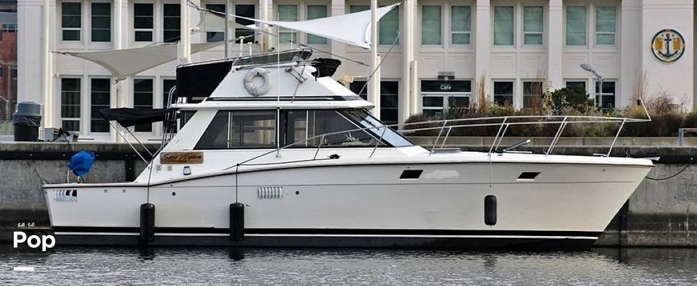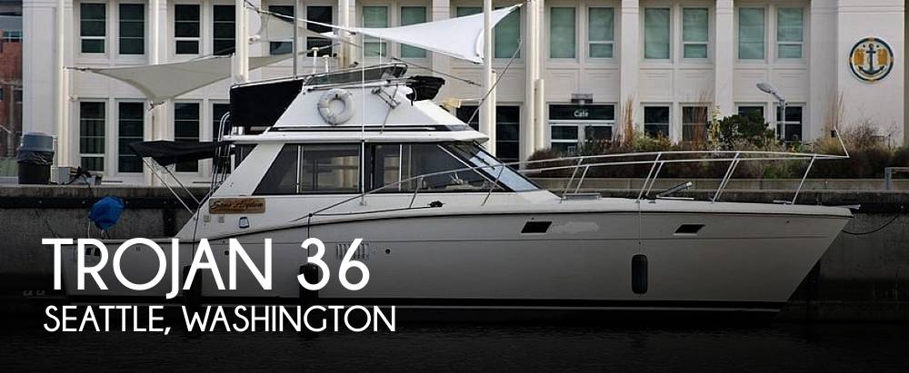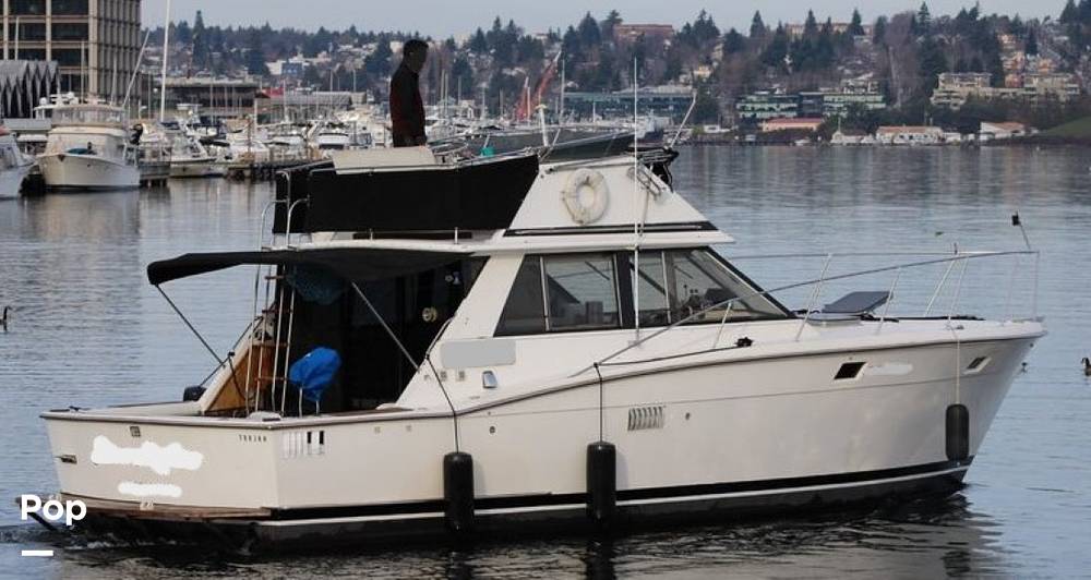Trojan F36 Flybridge Sportfisherman Repowered with Twin 7.4L Mercruisers, Solar, Furuno GPS Chartplotter, Diesel Heat and Much More!