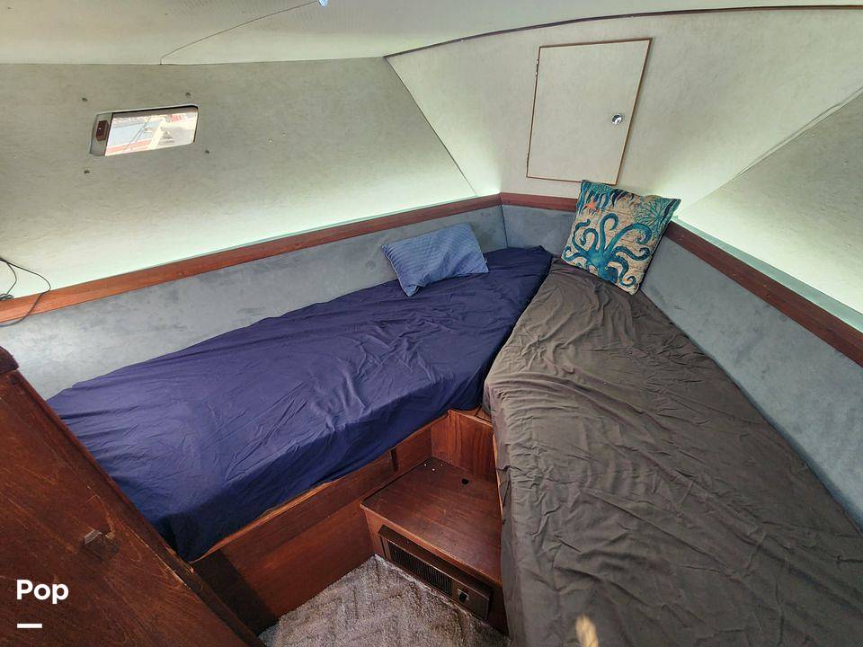 Step aboard the 1975 Trojan F36 Sportfish, a versatile vessel with twin V8 power for offshore adventures or liveaboard living. This boat offers an alternative to traditional spaces with its solar setup for off-grid living.