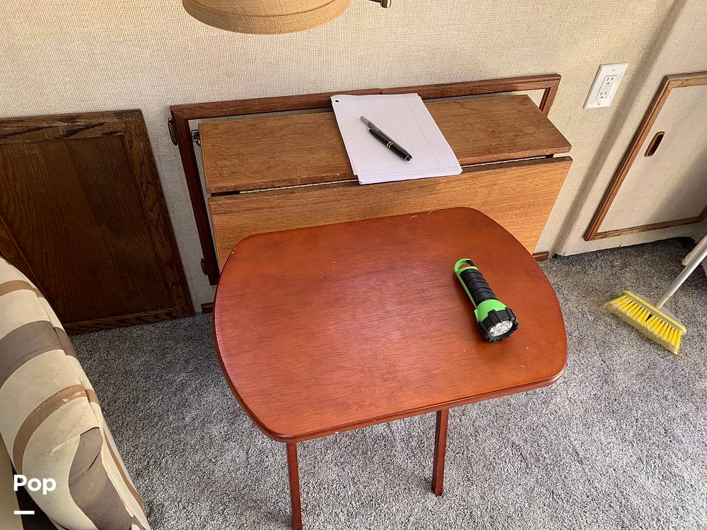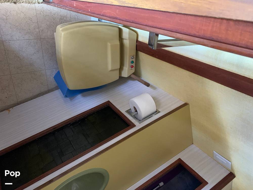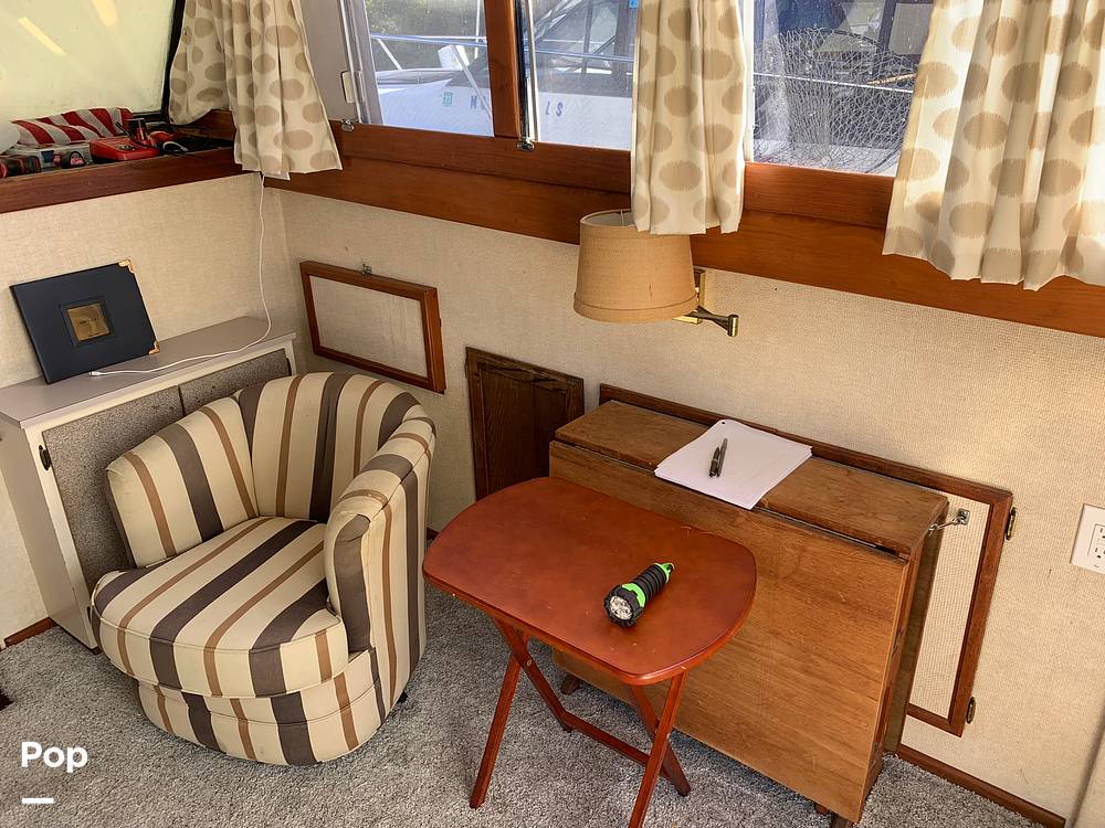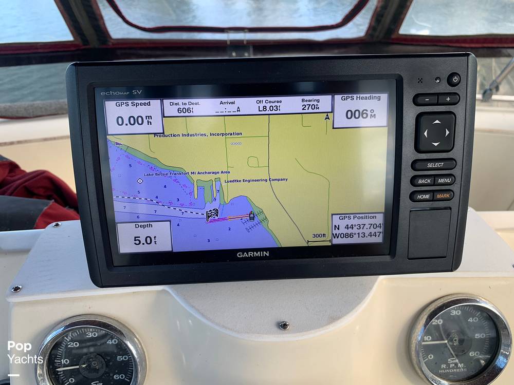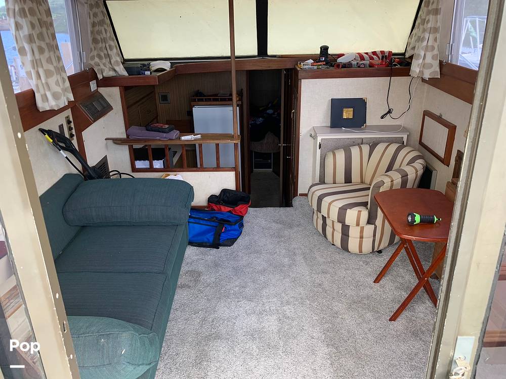 The flybridge offers control of the 2 -CH350 gasoline engines. Electronics include Garmin GPS, Newer VHF Radio and Raytheon Radar (needs repair).