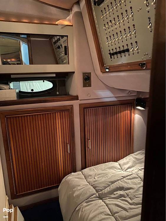 The Regal Commodore 360 provides comfortable accommodations for overnight stays or extended cruising. The boat features a master stateroom, complete with a large berth and ample storage space. Additionally, there is a guest stateroom with twin berths, along with a convertible dinette that could be transformed into an extra sleeping area. The boat's well-appointed head compartment offers a shower, sink, and toilet, providing all the necessary amenities for onboard comfort.