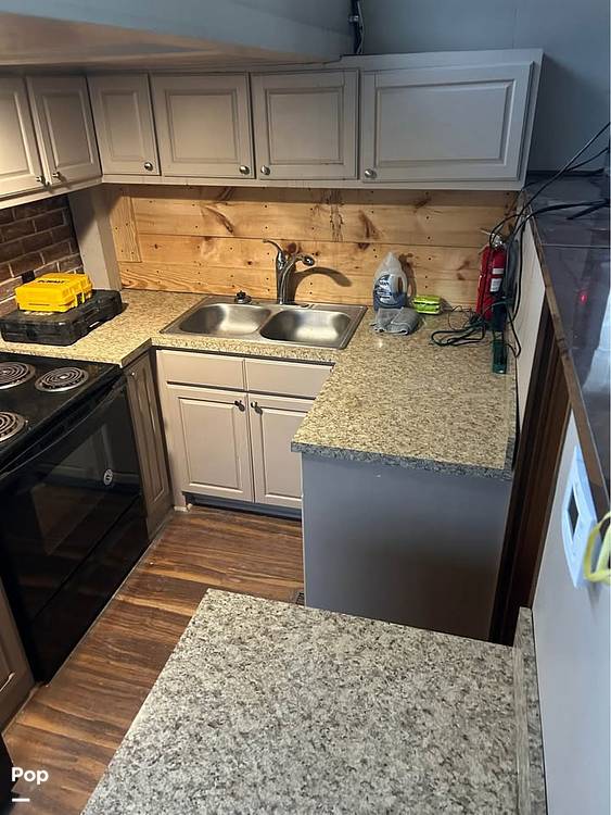 Kitchen galley master bedroom, full bath with tub and shower second bedroom with twin beds