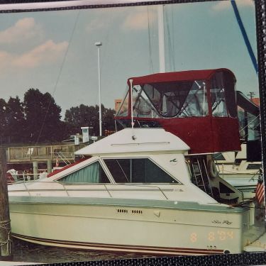 With a mid-cabin stateroom tucked beneath the dinette, the 1988 305 Sedan Bridge can boast two private staterooms in addition to a roomy salon with a full-size galley. the vessel has a two burner electric range, Tundra AC-DC refrigerator/freezer, micro-wave oven, 12,000 BTU Digital Air Conditioner with reverse heat making for a comfortable vessel from April to October. The athwartships double berth arrangement in the forward stateroom is innovative in its' use of space. The raised dinette has seating for four and can also convert to a berth for two. The Head has a Vacu-Flush toilet and shower and is located port as you enter the Salon. Mid-Cabin has a micro-wave, coffee maker, clothing locker and storage cabinets. This vessel has a custom bridge enclosure with 40 gauge Strata glass windows. There are four large horse shoe screens which provide ventilation fore, aft, and on both sides. The boat also has blue underwater lights. The vessel is stored inside at Safe Harbor Detroit River Marina. Contact the owner for additional info or to view the boat.