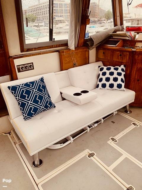 Single Cummins diesel is fuel efficient and the bow thruster makes docking easy.