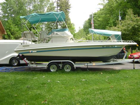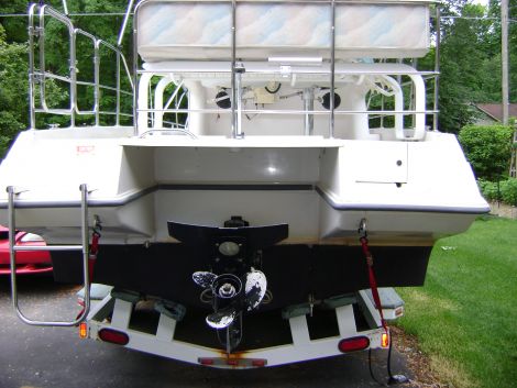 Mooring Covers, Dodger, Lounge Recliner, ual Captains Swivel Seats, 2 Fish Wells, Sink, Table from Deck on Dual Pedestals, Surround Seating on Bow, Skiis accessed from Water, Whale Tail, Dual Axle Trailer, Aluminum Wheels, bottom painted, NEVER in Salt Water.