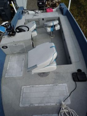 Eagle depth/fish finder, Minn Kota trolling motor with foot pedal controls, electric trim, 2 live-wells, front & rear navigation lights, bilge pump, 3 lights with switches around interior.