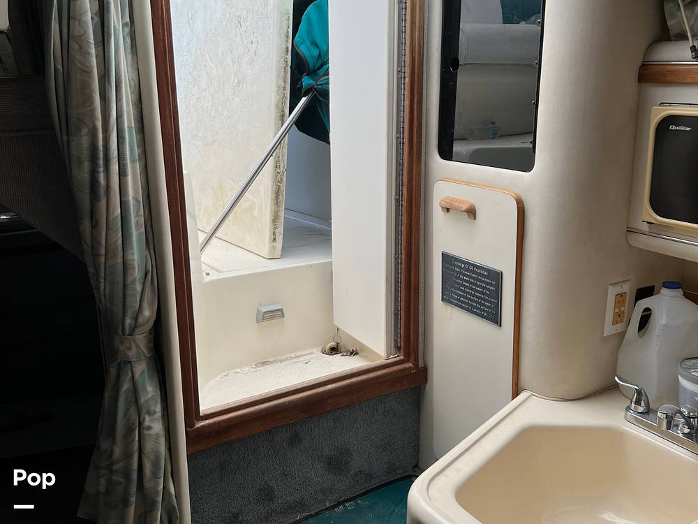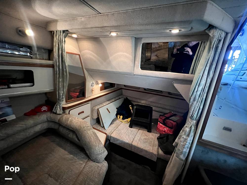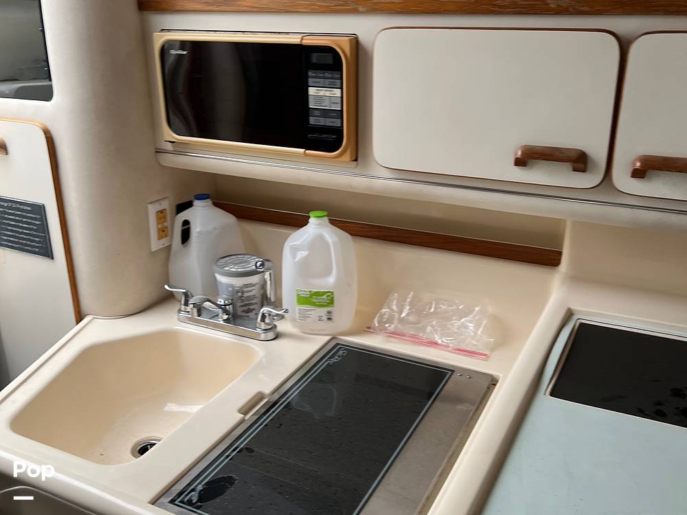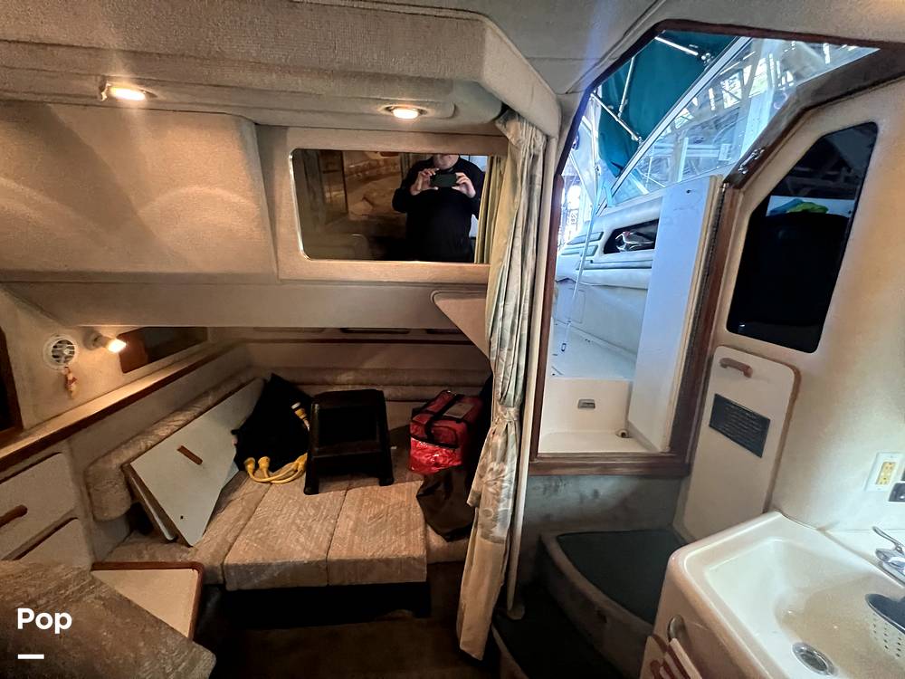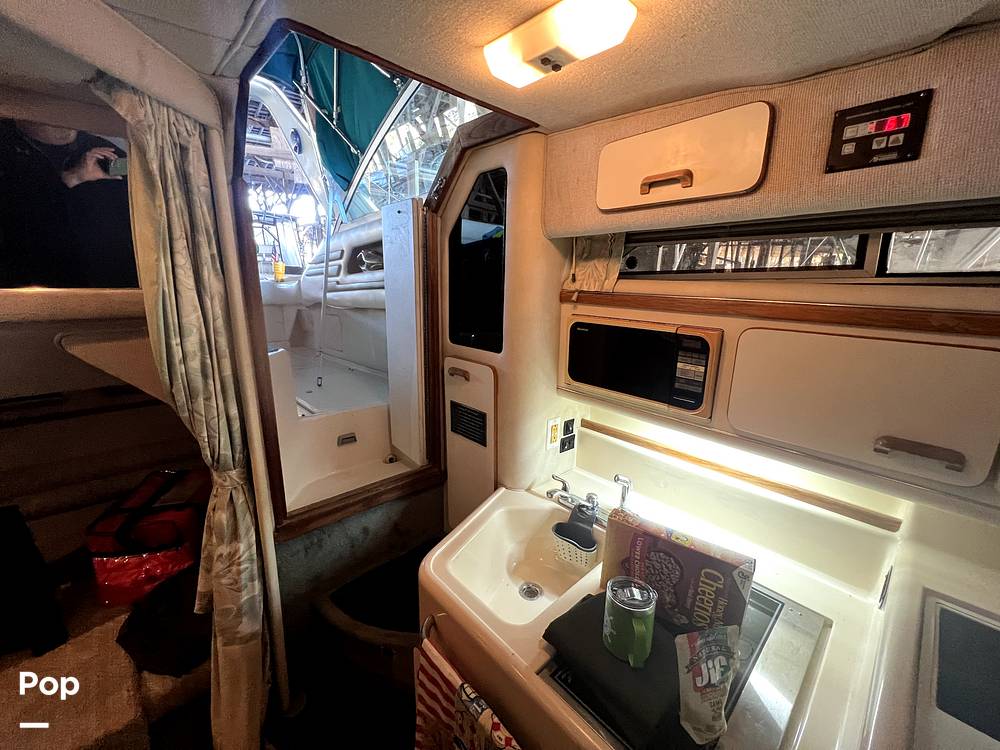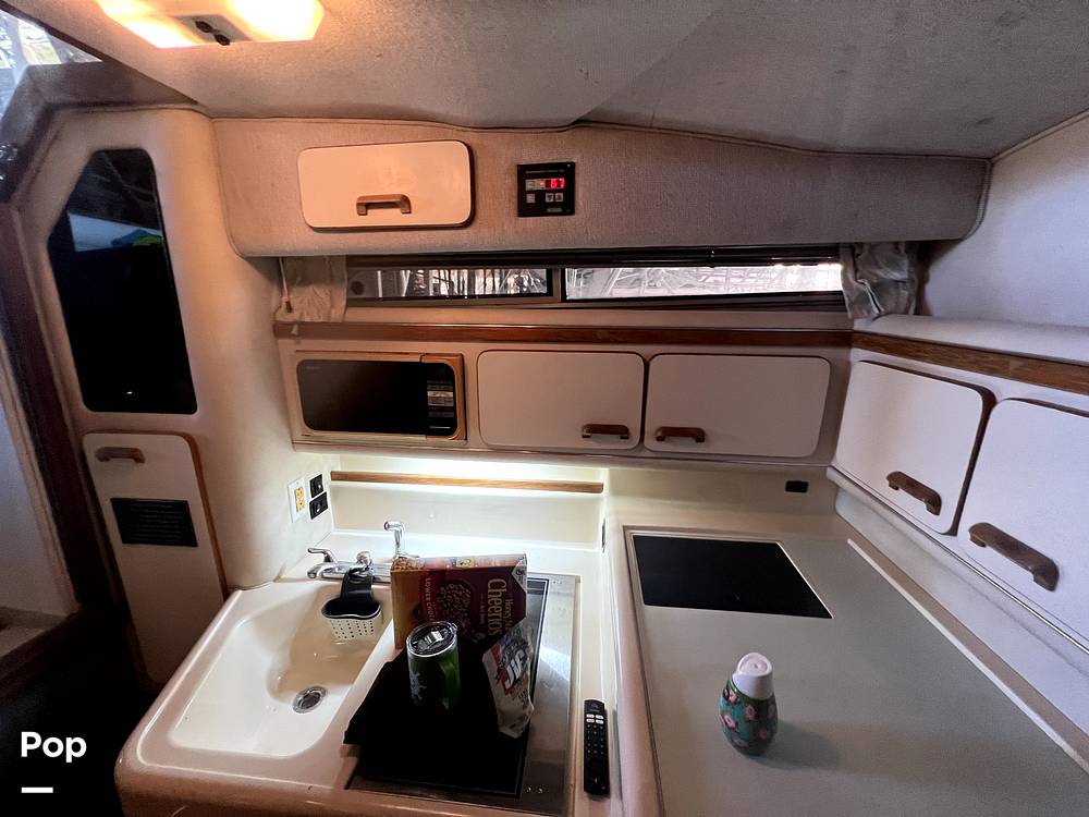 The great thing about being a 1993 Sea Ray is the 11' 6 beam. So much room below. 6' 5 -plus headroom below to accommodate almost anyone. The V-berth up front has a queen bed type of room and the mid-berth is a double at least. The large couch is big enough to seat 5 and converts to a bed as well. The galley area is clean and everything works as it should.