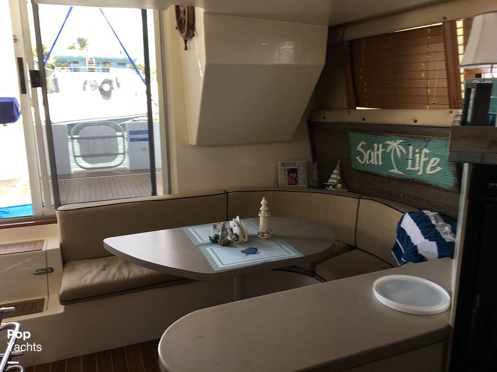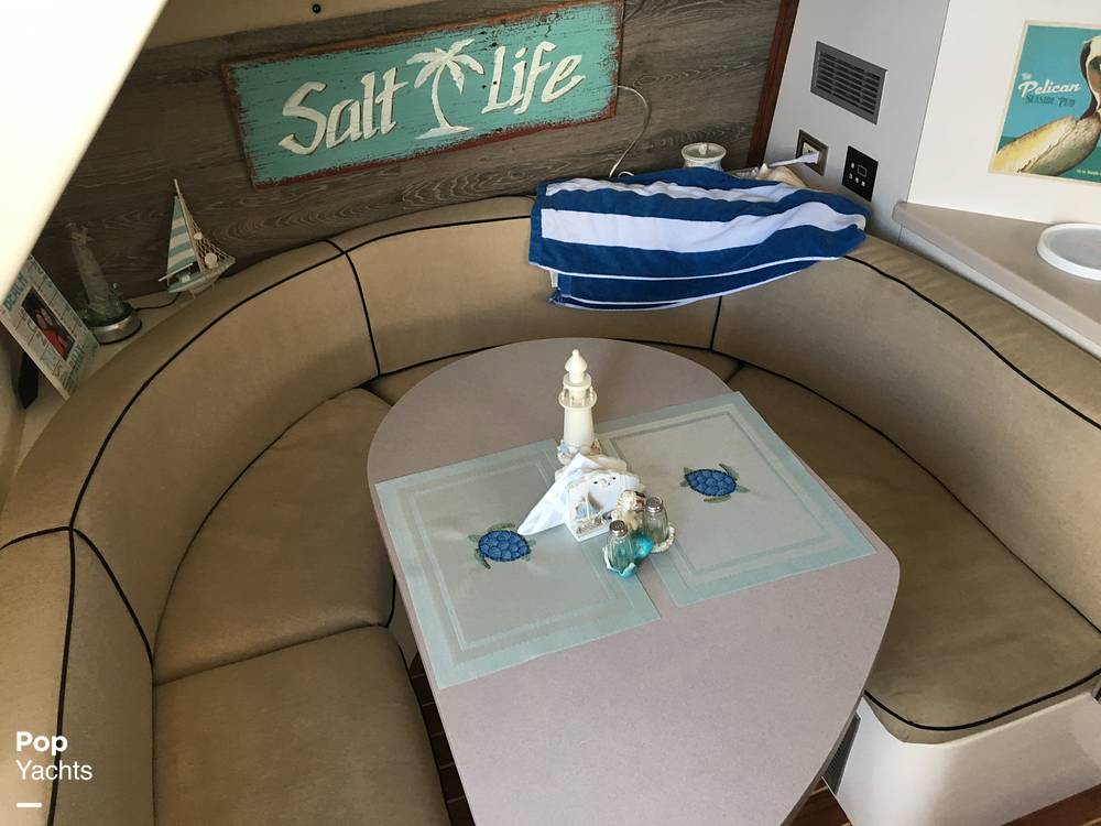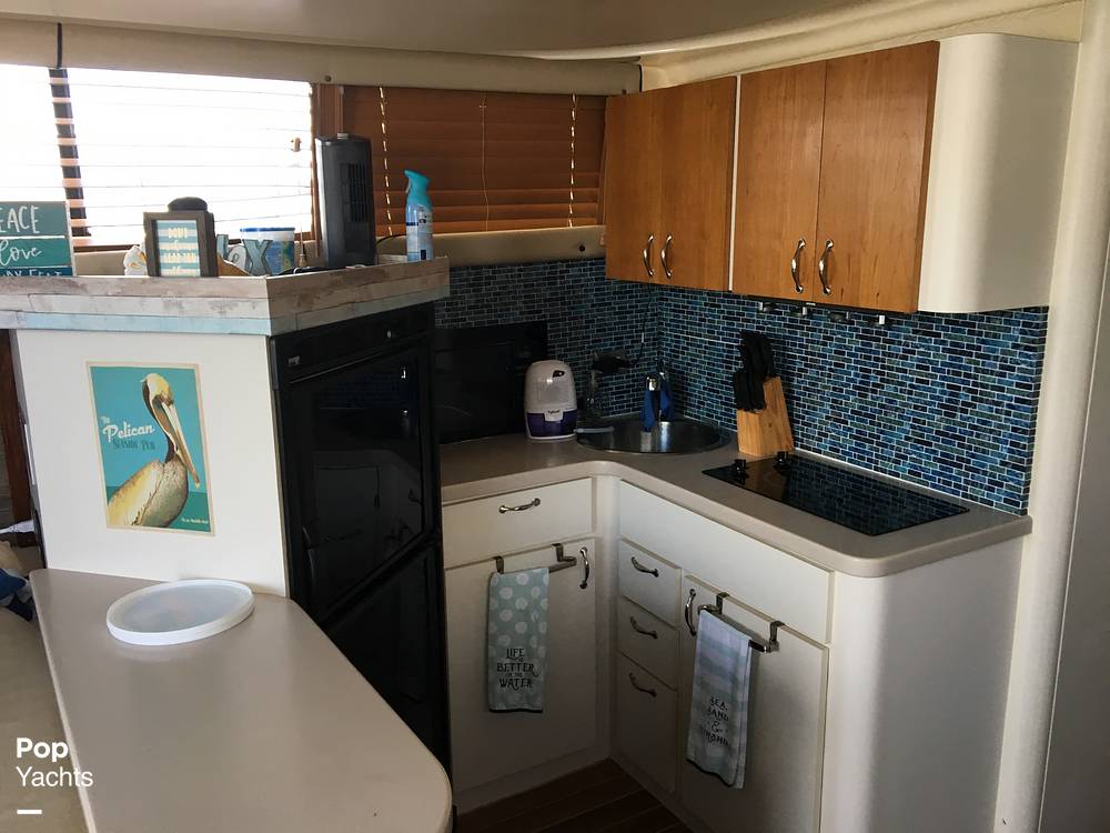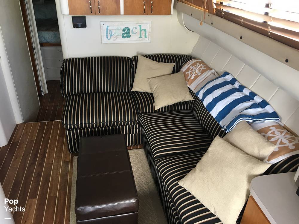 The interior feels nothing like other 40ft yachts. The wide beam moves forward to create the perfect salon for relaxing or entertaining a large group. An oversized dinette, large galley and L-shaped sofa(that turns into a bed) complete the open-concept. A flat panel TV, stereo system, and Blu-Ray player round out the leisure options. Galley provides great counter space, a fridge+freezer, newer 2-burner stove top and microwave. Storage above and below for long-range cruising.