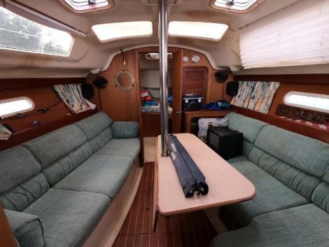 The Hunter 310 is great for staying aboard with a very roomy and comfortable cabin. Sleeping 6 comfortably, she is ideal for family recreation. However, her best feature is her sailing ability. She moves very well in most winds, obtaining 6-7 knots easily in medium to heavy winds. She holds a 30 to 40 list effortlessly. She is an excellent competitive boat against other sailboats under handicap in any sailing race. Boasts a Yanmar diesel 18hp.