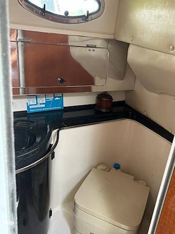 It has a V-berth and another berth mid-cabin.