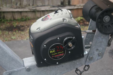 THE TRAILER IS A LOAD-RITE ROLLER TRAILER WITH POWER WINCH WITH REMOTE CONTROL