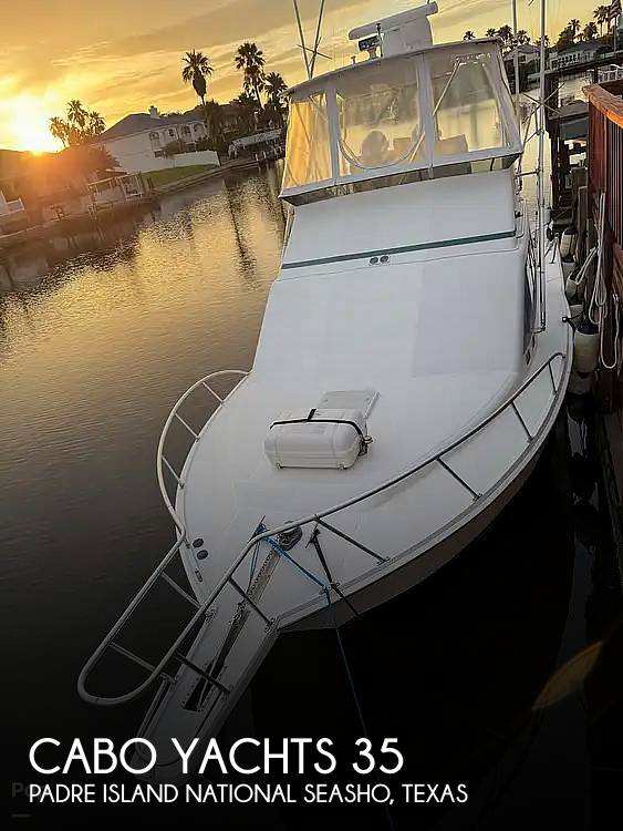 If you are in the market for a sportfish/convertible boat, look no further than this 2000 Cabo Yachts 35, priced right at $134,900.00 (offers encouraged). This vessel is located in Padre Island National Seasho, Texas and is in good condition. She is also equipped with twin Caterpillar engines.