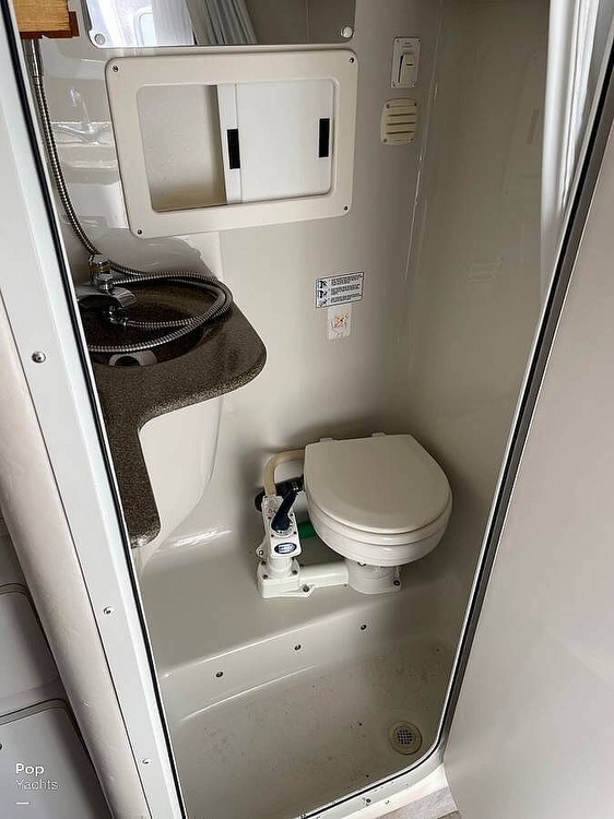 When connected to shore power the A/C and the fully equipped head with a flush toilet and handheld shower head make an overnight stay comfortable. With the V-berth and aft berth, you will have two sleeping areas that can accommodate 4.