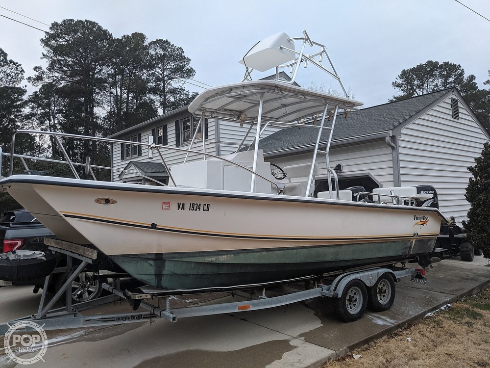 The Twin Vee offers a comfortable ride in many water conditions and an open layout that converts from family cruising to clear-deck fishing or crabbing vessel.