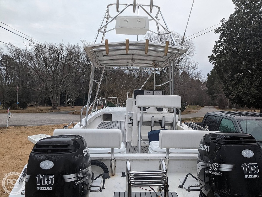 Powered by the twin Suzuki DF115s, she will pop out of the hole and cruise at 28 mph, getting you to your destination quickly and efficiently!