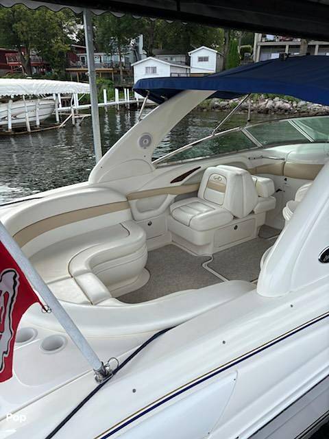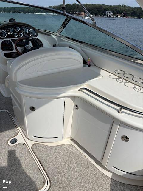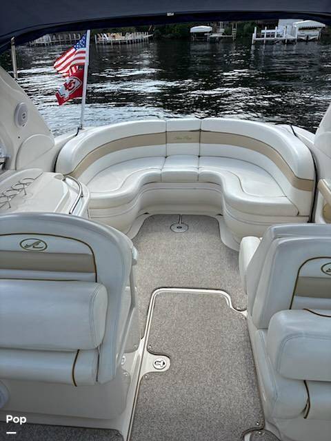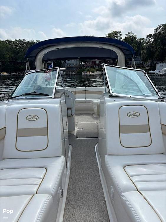 Double Bimini top, wet bar with fridge and bottle rack, snap in carpet, vacuflush head. Has twin Mercruiser 350 MAG MPI power(600 total HP)
