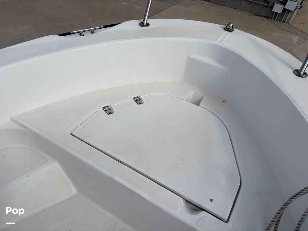 It offers generous cockpit space for anglers and family alike, with room for casting, seating, and gear storage. Standard features include a fold-down aft bench seat that opens the cockpit for fishing or provides seating for cruising, a forward casting platform with cushions, plenty of rod holders, a livewell, lockable console storage, and additional gear stowage throughout the boat.