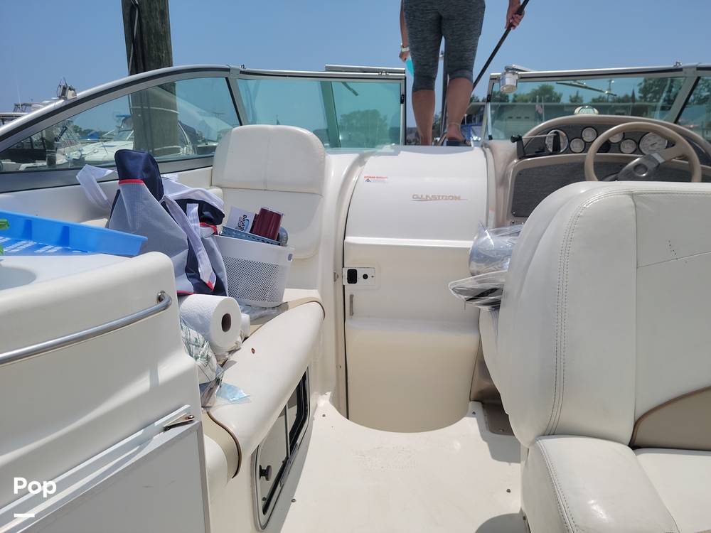 Features include a doublewide helm/aft-facing seat that converts into a sun pad. A sun lounge is opposite the helm, and there's a removable bench seat at the transom.