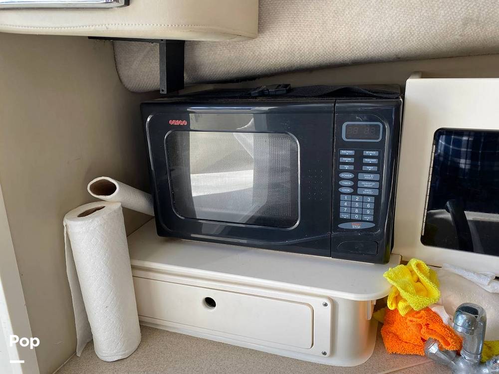 Down below you have a complete galley, with sink, microwave and refrigerator and between the mid cabin and main cabin, she will sleep 4 people in air-conditioned comfort.