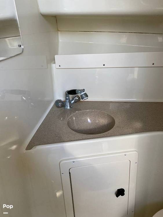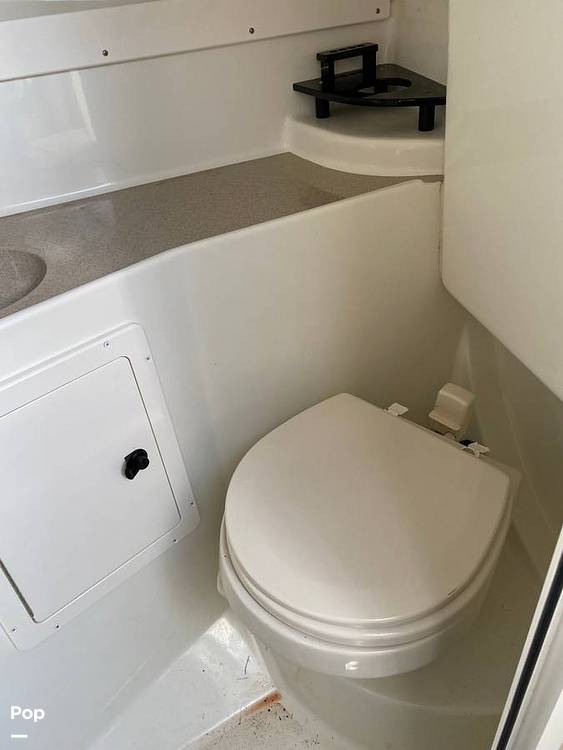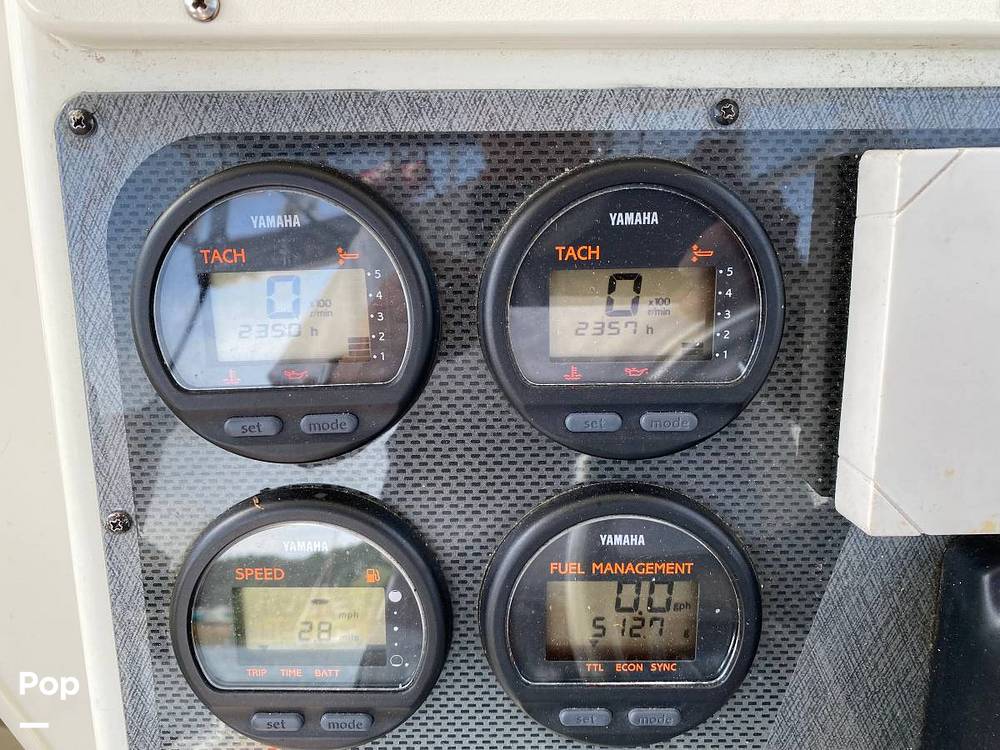 This particular boat has a complete cockpit surround that will keep you out of the weather. She is equipped with a fish finder, GPS, Radar, top-mount LED light bars for docking, blue LED interior accent lighting,