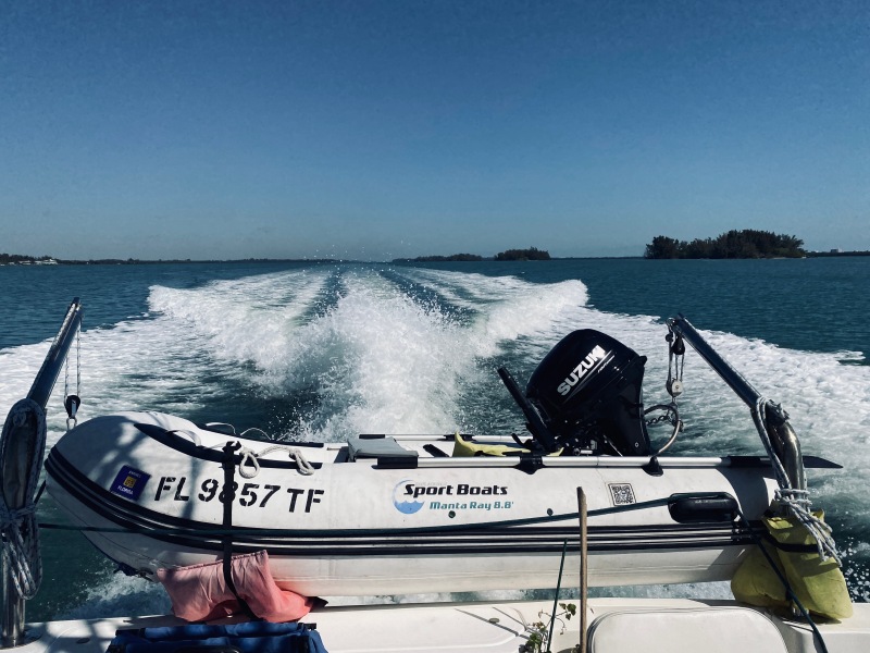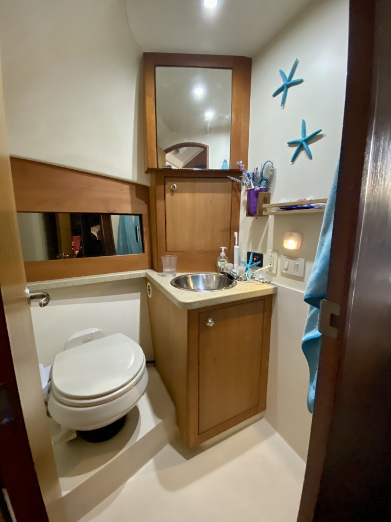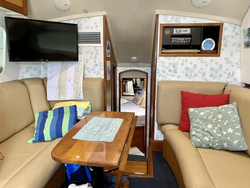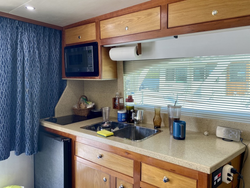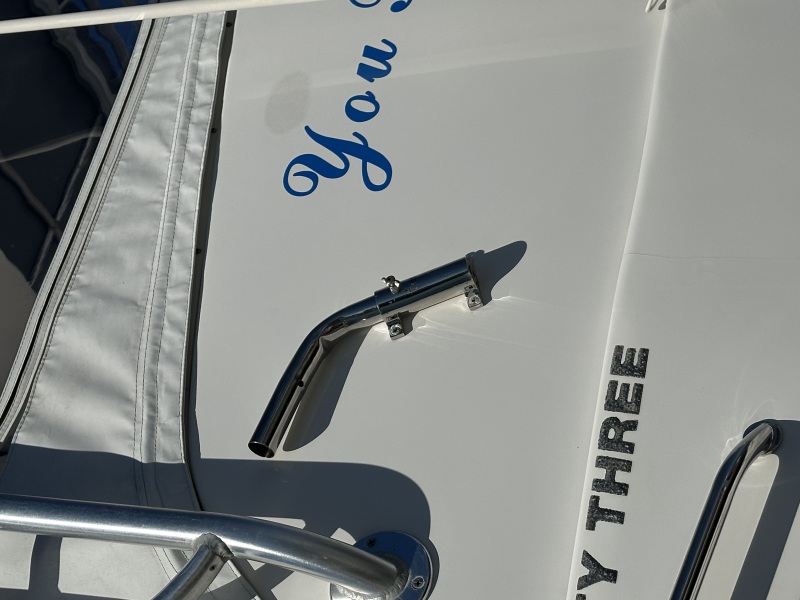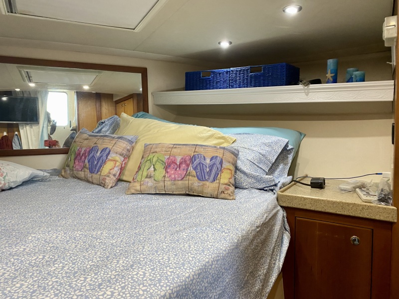 8 KW Koler generator with diesel engine. 1610 hrs. Fire suppression system in engine room where propulsion engines and generator are located. Bennet in-hull trim tabs. Tides Marine dry shaft seals with spare seal inside carrier on each drive shaft (allows shaft seal to be replaced without having to haul out boat). AC/heat salon/shower room system upgraded to 16,000 BTU (from 12,000 BTU) (9/24/2023), Master Bedroom/bathroom AC/heat system upgraded to 9,000 BTU (from 6,000 BTU) (8/5/2020). VACUFLUSH sanitary system (all seals and duck bills replaced) with 40 gal holding tank. Lewmar Windless with 200 feet of anchor 5/16 chain. Fresh water deck shower hose, fresh and saltwater deck hoses, live-well and fish boxes. Removable stern davits for dinghy. tte2021 Sport boats 8.8' Manta Ray inflatable dinghy with 2022 Suzuki 9.9 hp 4 stroke engine.