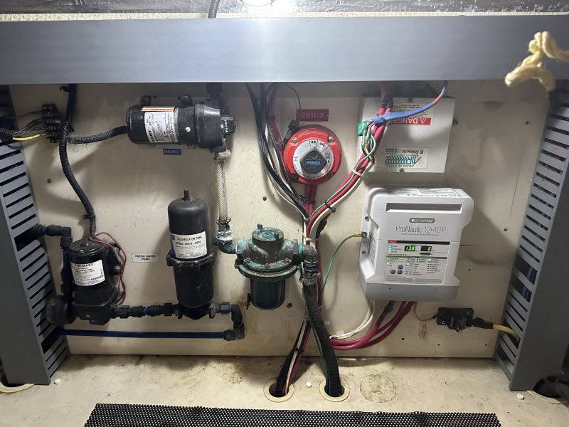 Shore power 50Amp 240-volt system. 8 KW generator to provide AC power while underway. ProSafe 1 Galvanic Isolator Monitor system. Battery isolation system. Two Deep cell High-capacity batteries to start the 370 hp diesel engines and run all lighting, pumps and DC equipment. One battery dedicated to start the diesel generator. One Battery for all bridge electronics with its own charger.