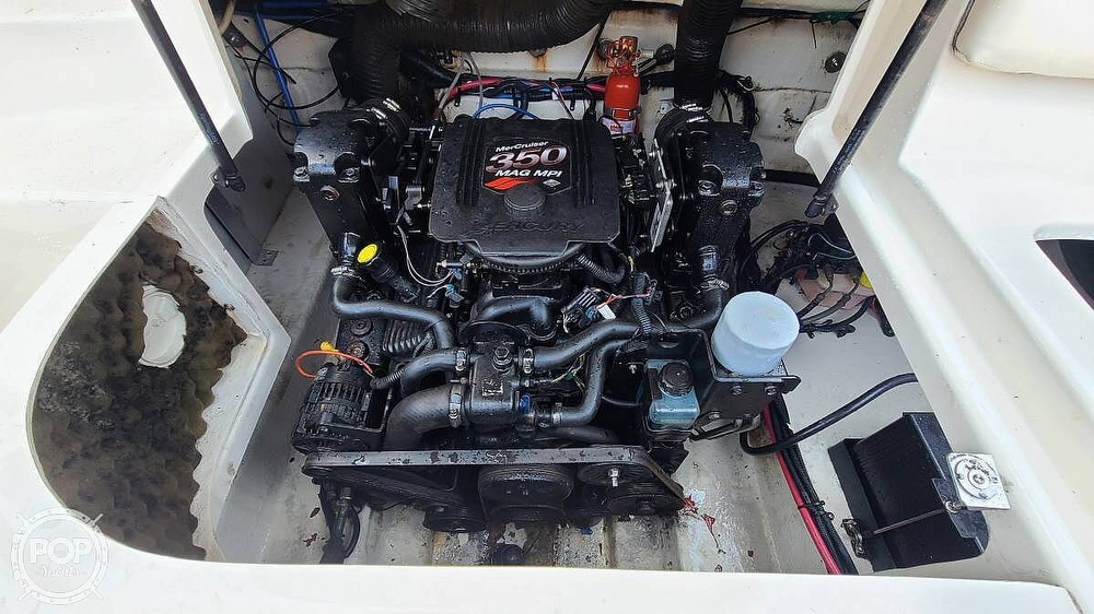 This boat is located in Manahawkin, New Jersey and is in great condition. She is also equipped with a Mercruiser engine that has 350 hours.