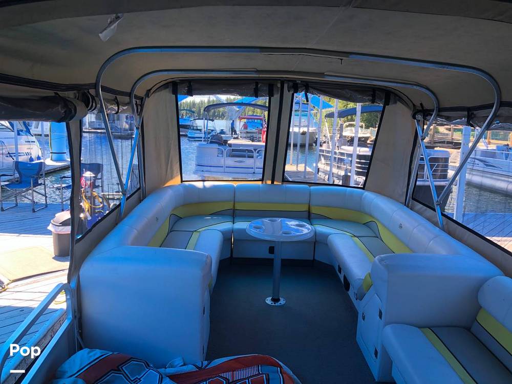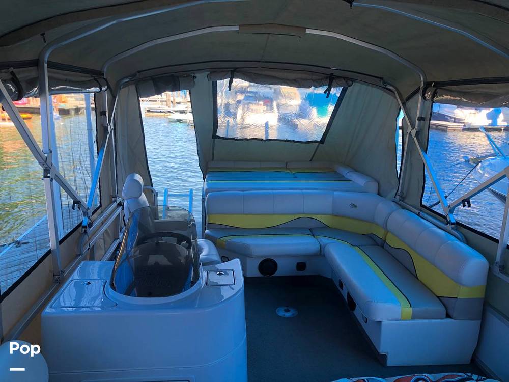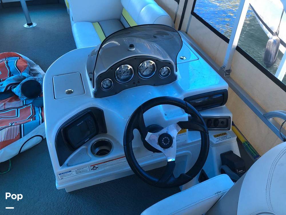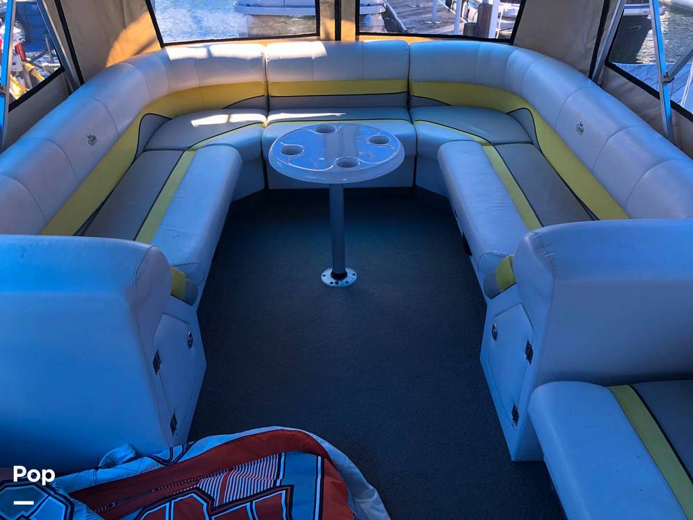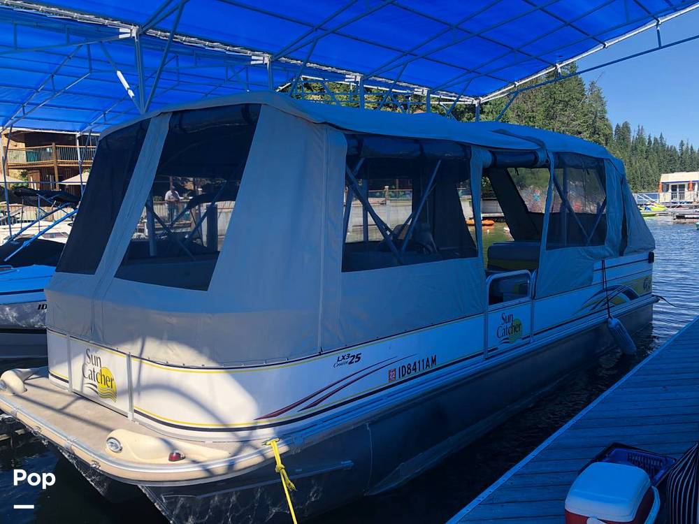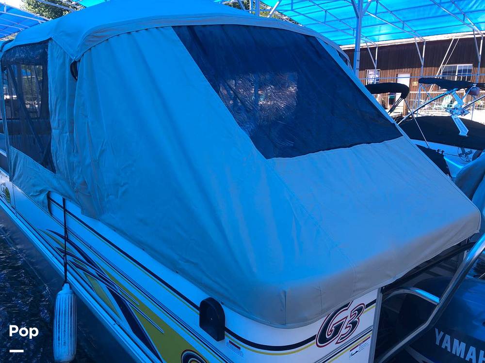 The 2007 G3 Pontoon LX3 25C is a tritoon boat model with a 150 HP Yamaha engine. It has a live well and depth finder double bimini top with a removable complete enclosure.