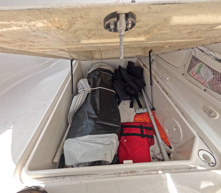 Below deck, you'll find a cozy cabin appointed with rich finishes, a convertible V-berth, full galley with refrigerator, electric cooktop and microwave, and an enclosed head with shower - perfect for overnight stays or weekend getaways. The Quarter-Berth offers another berth for passengers. And, the Air Conditioner keeps you cool when there's no breeze.