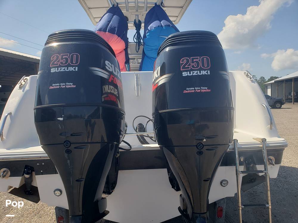 Power is supplied by twin Suzuki DF250 four-stroke engines. The actual hours are unknown.