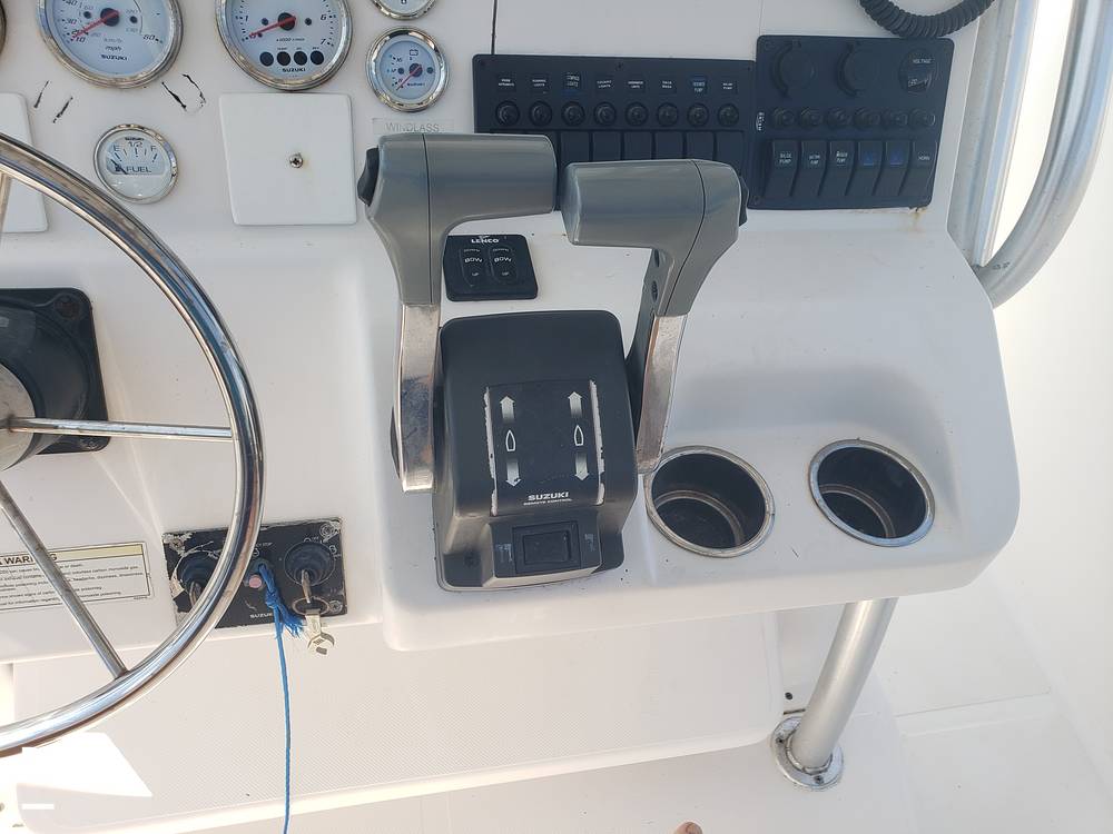 Big boat features with Carolina bow and twin Suzuki four strokes!