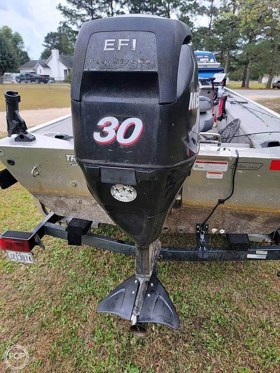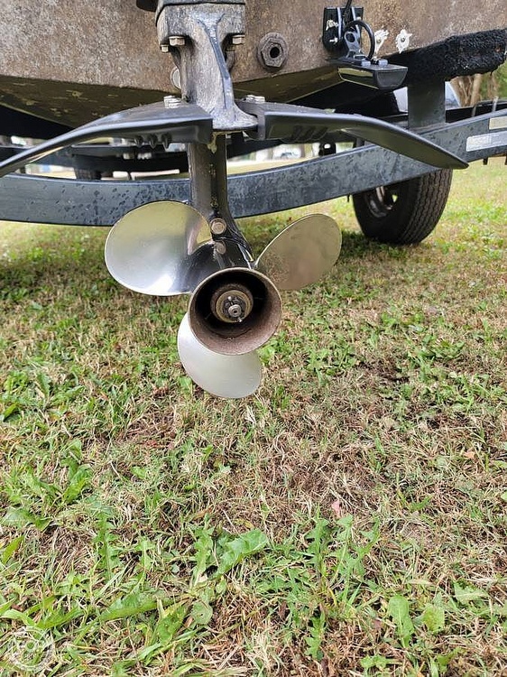 It has a 30 HP Mercury EFI engine with a stainless steel propeller with power trim/tilt, as well as a 70# thrust 24 volt trolling motor, and 45 Shaft.