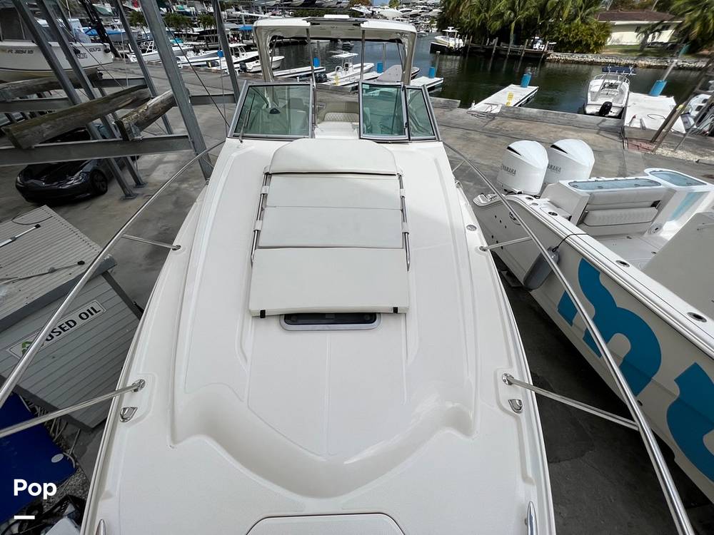 This boat is equipped with a large hard top on top of a super roomy cockpit with a three person seat at the helm, that is equipped with the finest electronics, plenty of seating and lots of storage.
