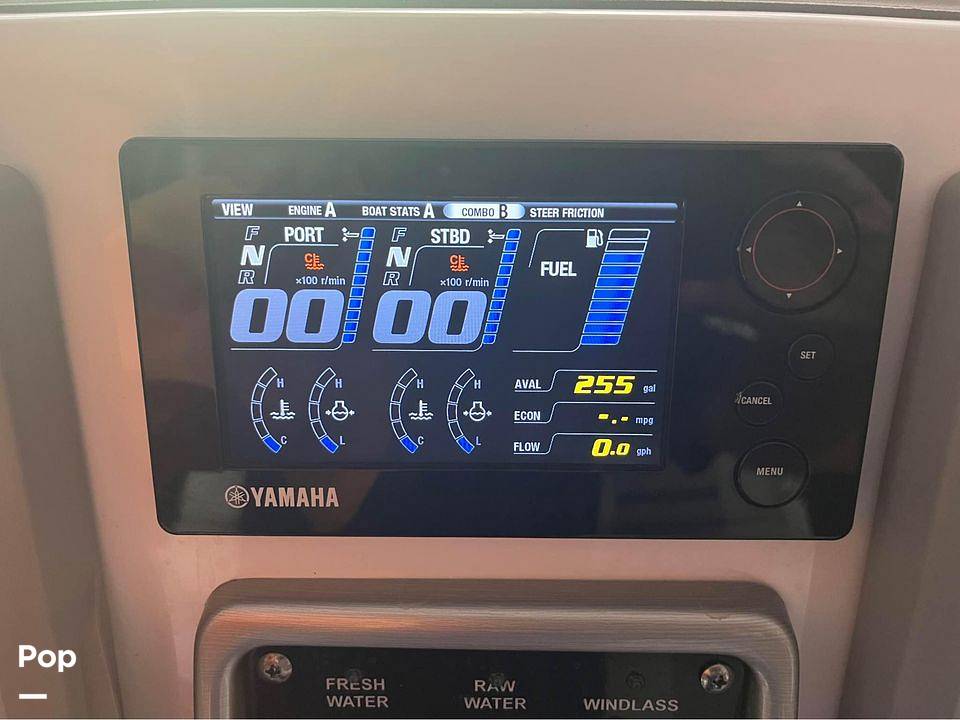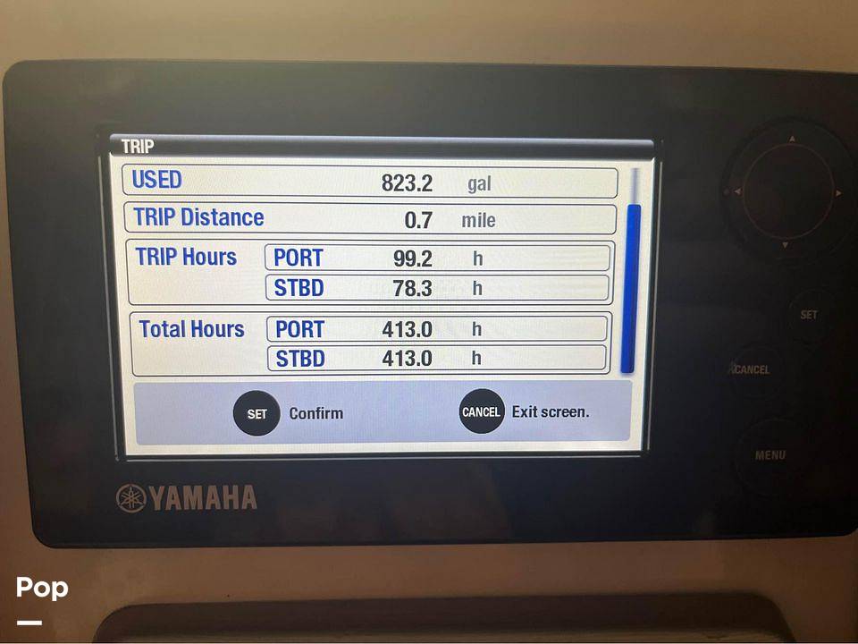 This 32-footer with it's Deep Vee Design powered by twin Yamaha 350 Four Strokes with only 413 hours on them cruises nicely at around 30 mph and tops out just north of 50.