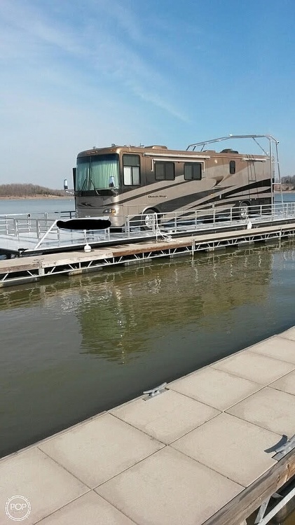 The motorhome's rear wheels are positioned on rollers that are connected to the outdrive of the boat. When you accelerate using the motorhome's gas pedal, the Rollerboat is propelled forward. The outdrive will go into reverse when you put the RV in reverse.