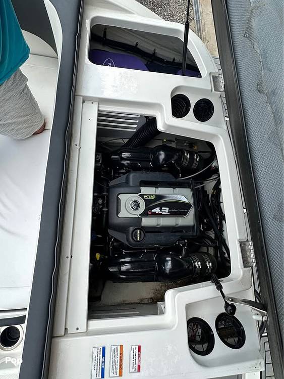 Just 262 hours on the dealer maintained 220 HP Mercruiser I/O; stored indoors, this boat is turnkey and ready to go.