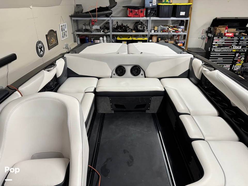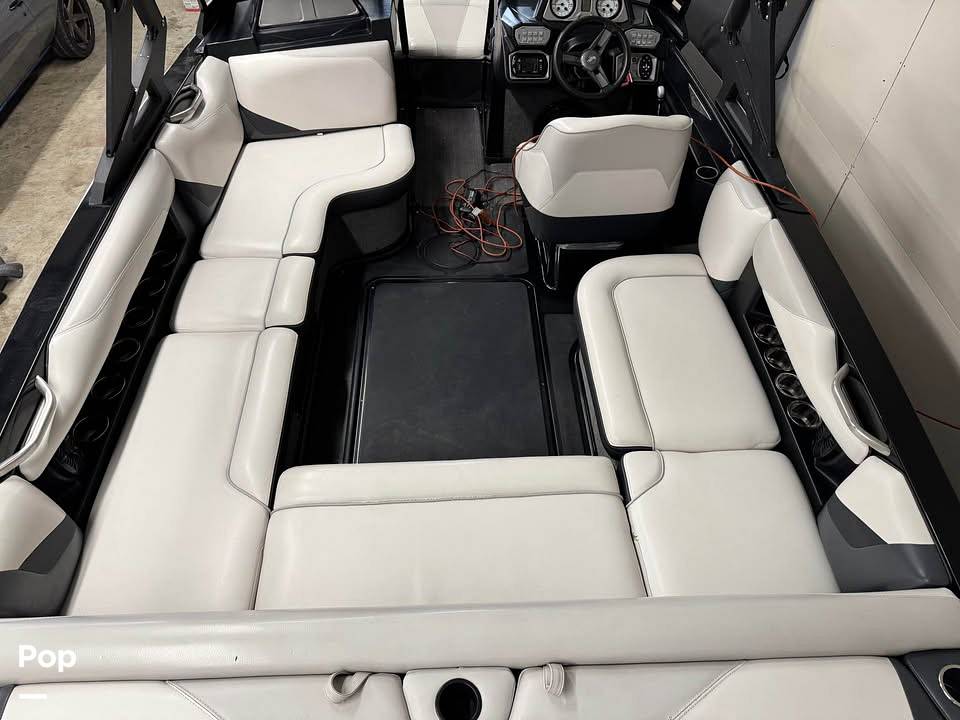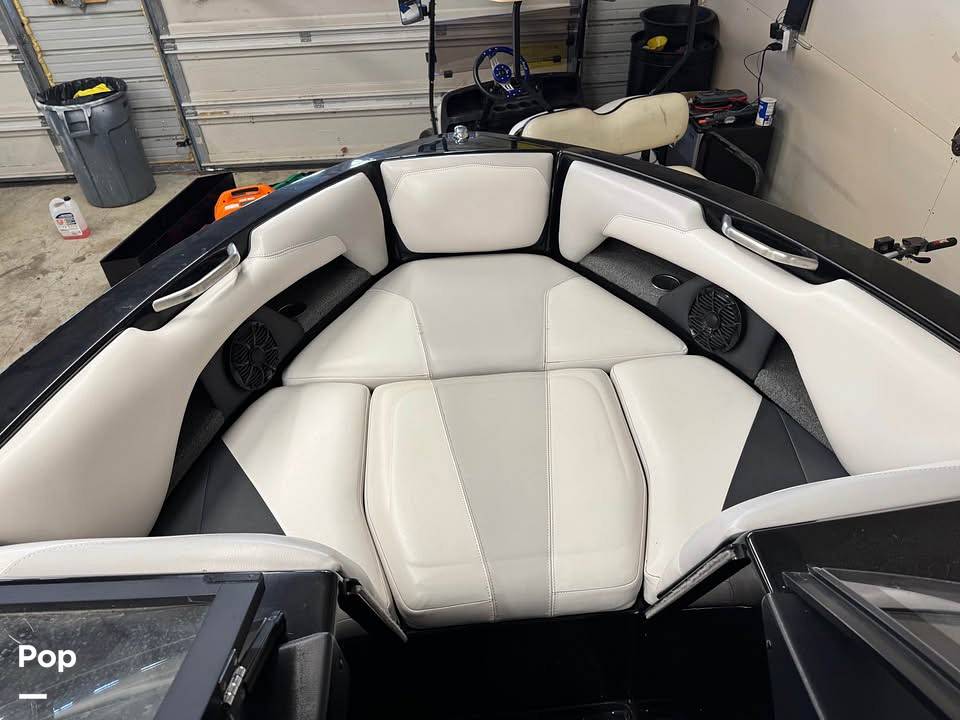 This 2017 Axis T22 is a 22-foot wake and surf boat is known for its classic bow design, large capacity, and customizable wakes. It was built on a Wake Plus hull, and in 2017, it came standard with a Monsoon 409 engine and electronic shift.