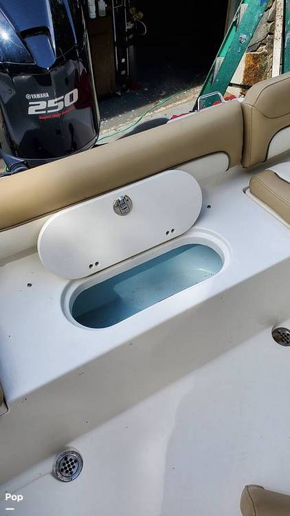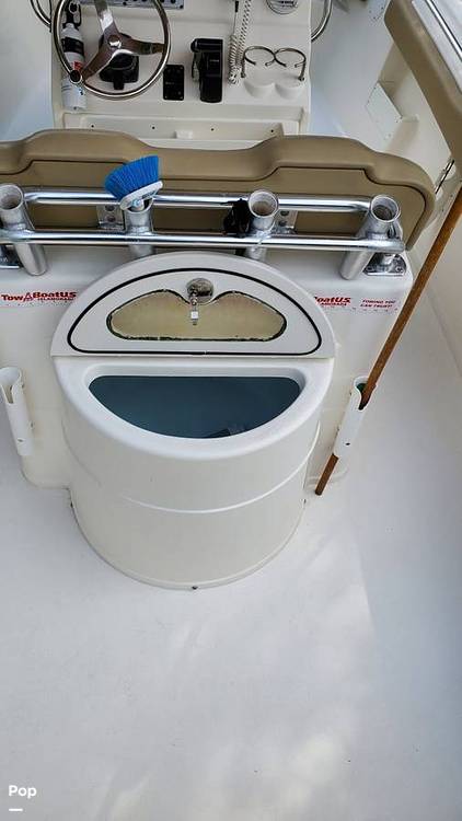 But it's not all about leisure; the boat comes alive for the serious angler. Two live wells take center stage: a primary 45-gallon tank perfectly positioned in the boat's center ensures stability and keeps a significant volume of bait alive and kicking. A secondary 10-gallon rear tank is there for bait separation. With 14 rod storage racks, 6 trolling rod holders, and a chart plotter marked with various Florida reefs, you're well-equipped for a fruitful day of fishing. The full sonar with side scan, down scan, and the addition of a commercial-grade auto-pilot epitomize this boat's technological prowess.