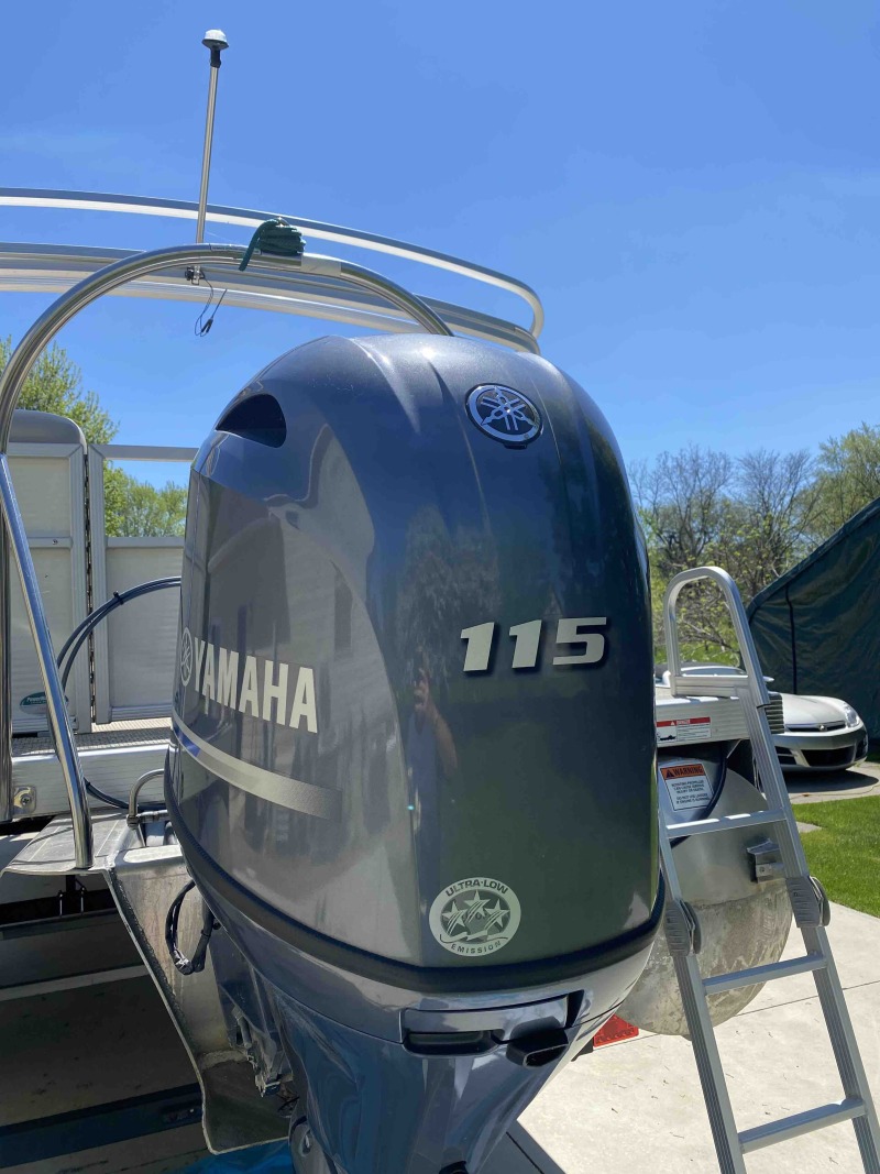 BENNINGTON 25 SSRX luxury pontoon in excellent condition, includes 2021 Karavan dual axle trailer with safety braking features. Yamaha 115hp outboard motor runs perfectly. Beige exterior with Irish green accent, beautiful beige leather interior in near-perfect condition. Ski bar setup, Bimini top rails, Garmin depth finder, Bluetooth deluxe stereo system, extra moveable seat, faux weave weatherproof flooring, 2 anchors included. Awesome boat!