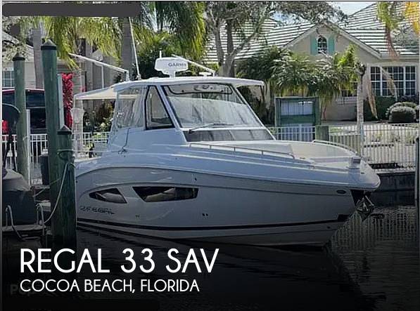 If you are in the market for a express cruiser, look no further than this 2019 Regal 33 SAV, priced right at $267,000.00 (offers encouraged). This vessel is located in Cocoa Beach, Florida and is in good condition. She is also equipped with twin Yamaha engines that have 800 hours.
