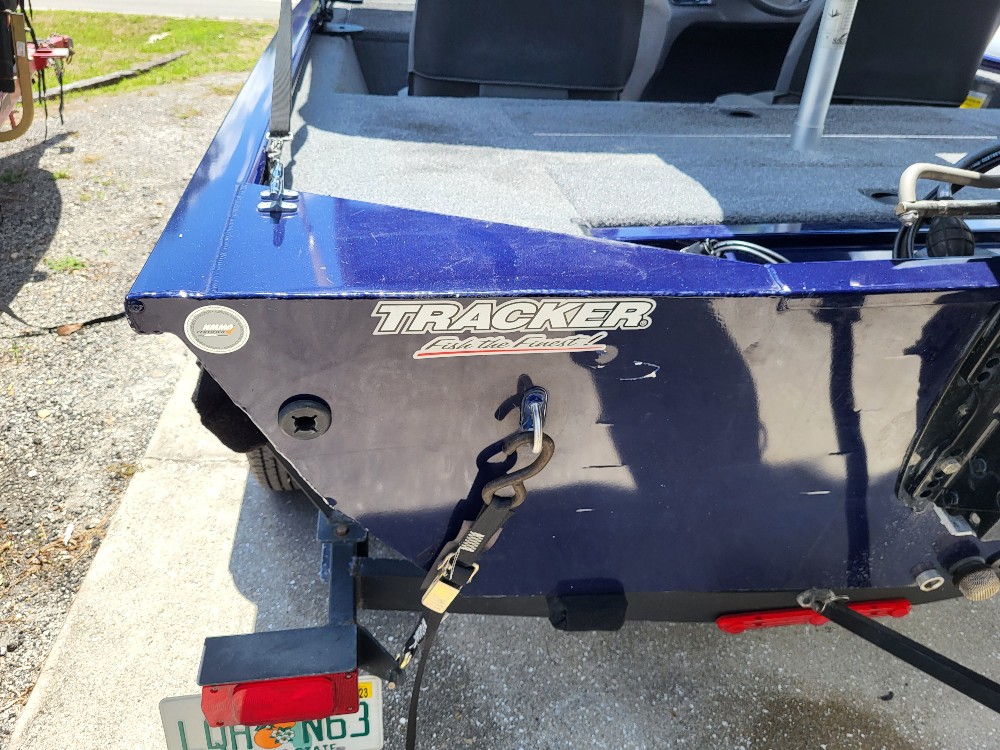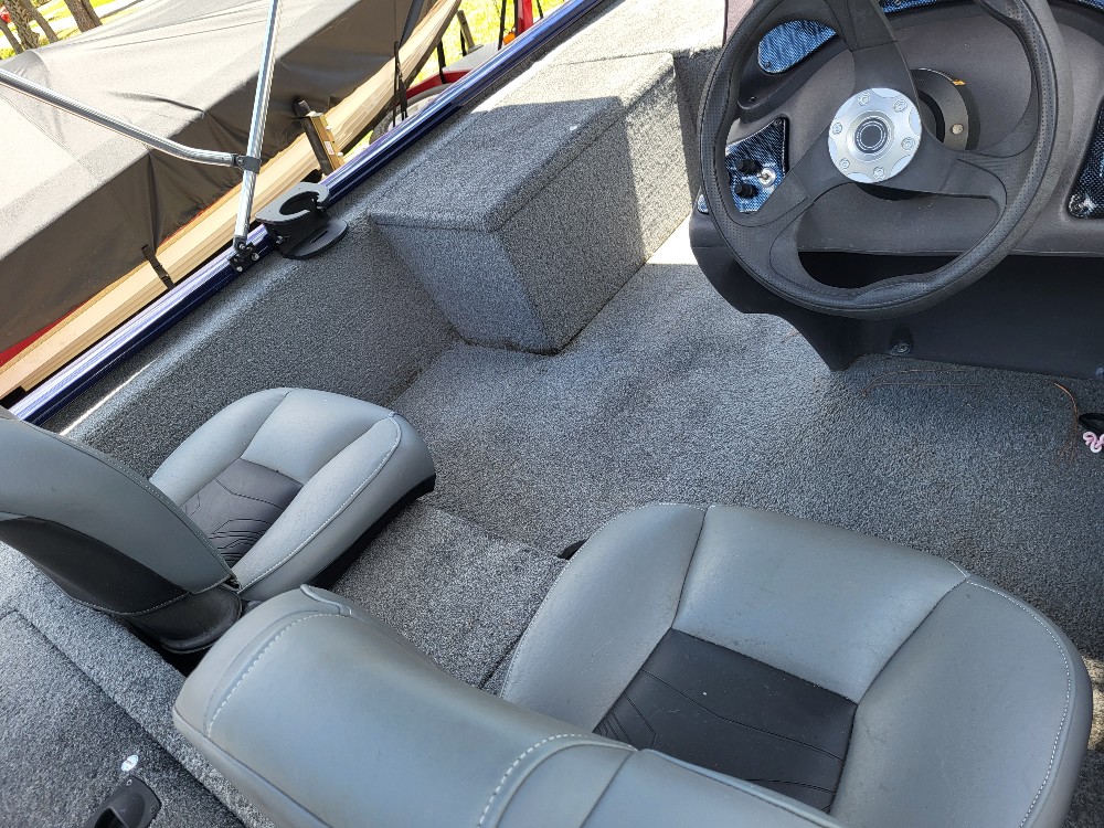 2019 Tracker Pro 170 with average wear and only 64 hours on the Mercury 50hp elpt four stroke motor. Very fuel efficient and super quiet. Many upgrades include Bimini top w/cover, Vessel view chip added to the motor, versa track cup holders, Lowrance 7inch touch screen fish finder installed at console and the 4-inch Lowrance moved to the bow and has a brand new spare tire and mount, All work performed by Bass pro shop techs, new cranking battery and has had 2 100 hour services and just got new gas filters all done at Bass pro shop. Starts first crank every time. Has a full tank of rec 90 and has only been run on rec 90 gas. No rips or tears in the seats and includes 2 15 lb. anchors and side bumpers. Still has original bait bucket in the live well and everything works. Includes bow nav light and rear night light.