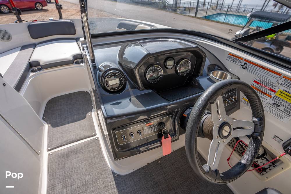 The boat includes a 250 HP upgrade, wakeboard tower with Bimini top, and depth sounder, too!