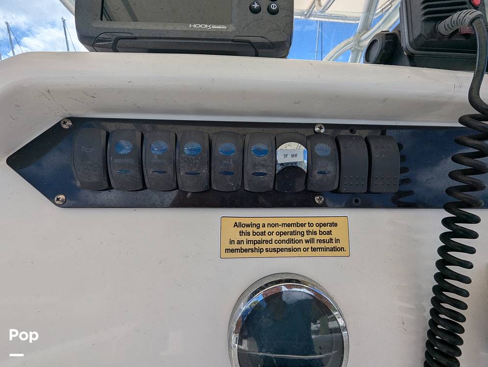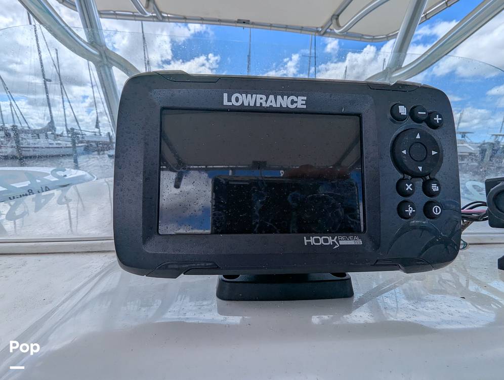 This boat features a range of amenities designed to enhance your boating experience, including a Lowrance GPS/fishfinder, a premium sound system, and multiple rod holders. The boat is also equipped with a live well, ample storage compartments, and a T-top for shade and weather protection.