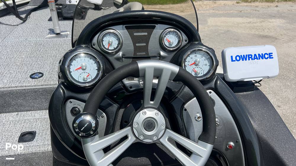 It has two Lowrance navigation-fish finders on board with a split shot transducer and GPS speed, fuel, tach, and trim, voltmeter, and water pressure gauges.