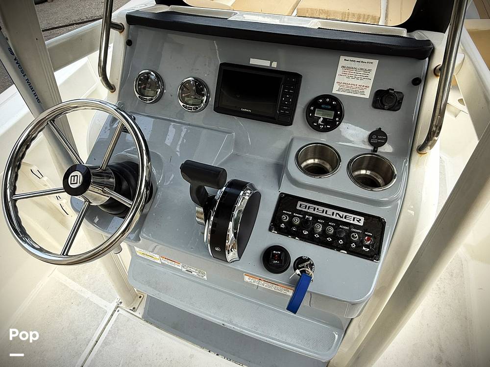 For sale is a 2022 Trophy T22CC Center Console by Bayliner, a boat designed to satisfy both the dedicated angler and the family looking for a comfortable time on the water. This versatile 22-foot center console blends functionality, performance, and comfort in a clean, modern package. The stylish factory T-top provides excellent shade and protection, and the thoughtfully designed layout features comfortable forward seating with backrests and dual flip-up transom seats, giving everyone on board plenty of room to relax and enjoy the ride.
