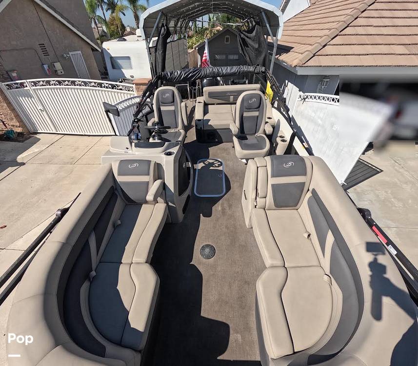 This 2023 Barletta Cabrio 20UC, equipped with a powerful 150HP Mercury outboard, is loaded with factory upgrades and ready for the water.