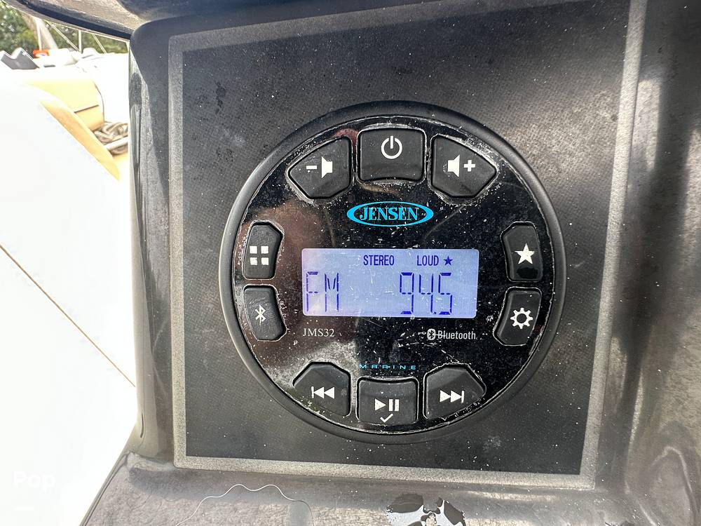Enjoy the spacious layout featuring plush bow seating with integrated storage, a protective bimini for essential shade, and an extended swim platform for easy water access. Premium amenities include a Bluetooth stereo system, Simrad GPS navigation, and a convenient flip-flop backrest on the passenger seat.