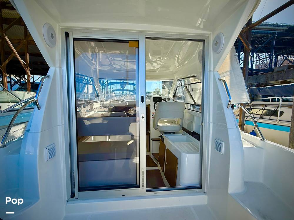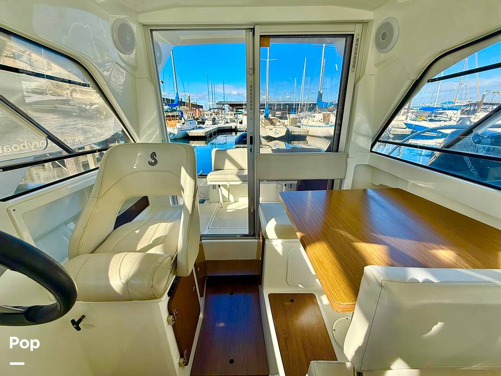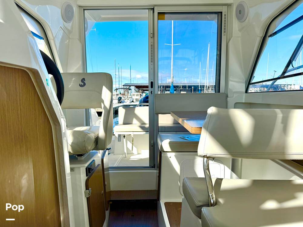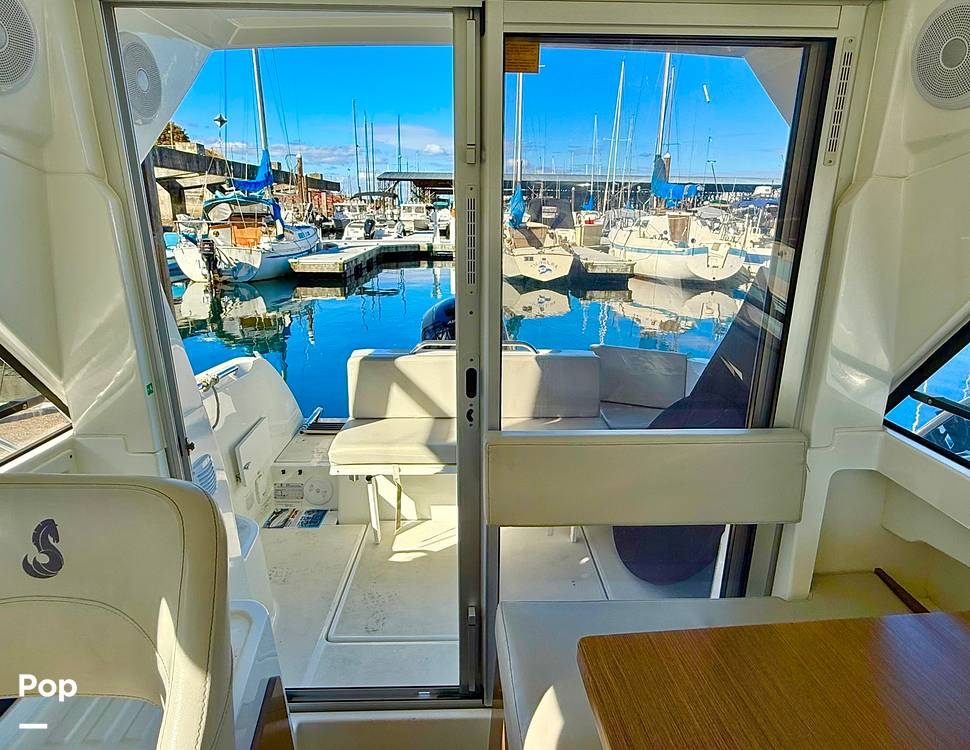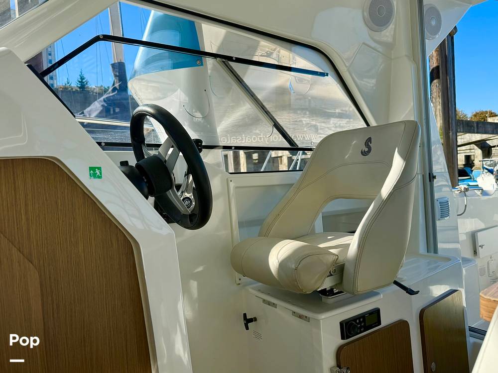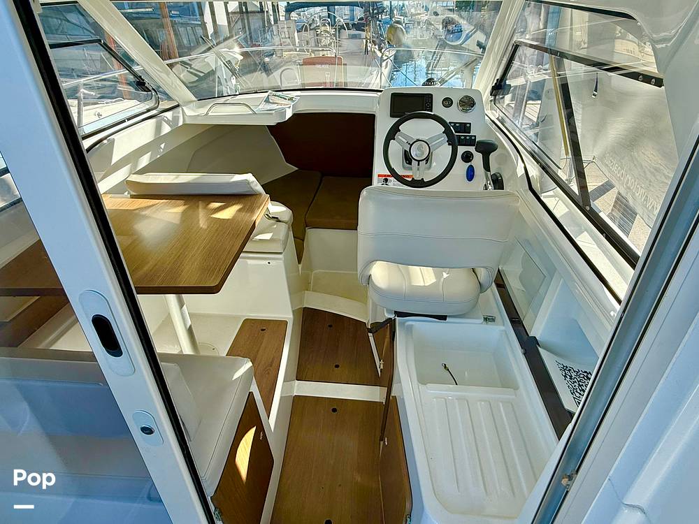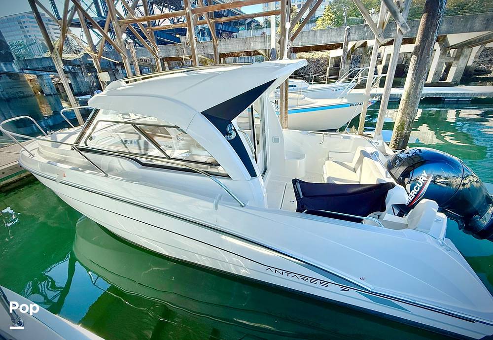A large sliding door opens into a bright and airy cabin surrounded by panoramic glazed windows, providing exceptional visibility and ventilation. Powered by a reliable and efficient Mercury 150 HP engine, this nearly new Antares 7 delivers smooth, confident handling with impressive fuel economy -- perfect for long days exploring or cruising the Puget Sound.