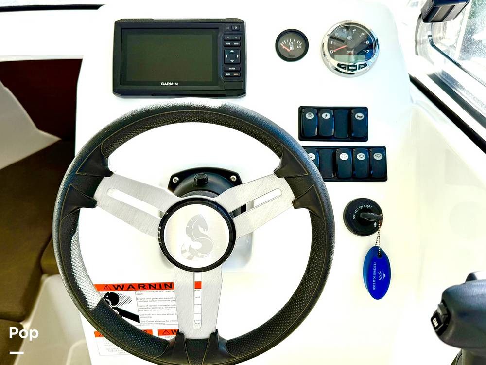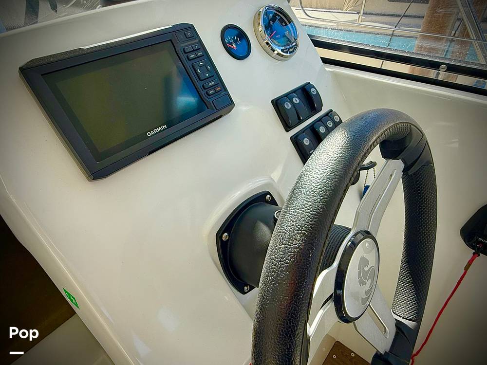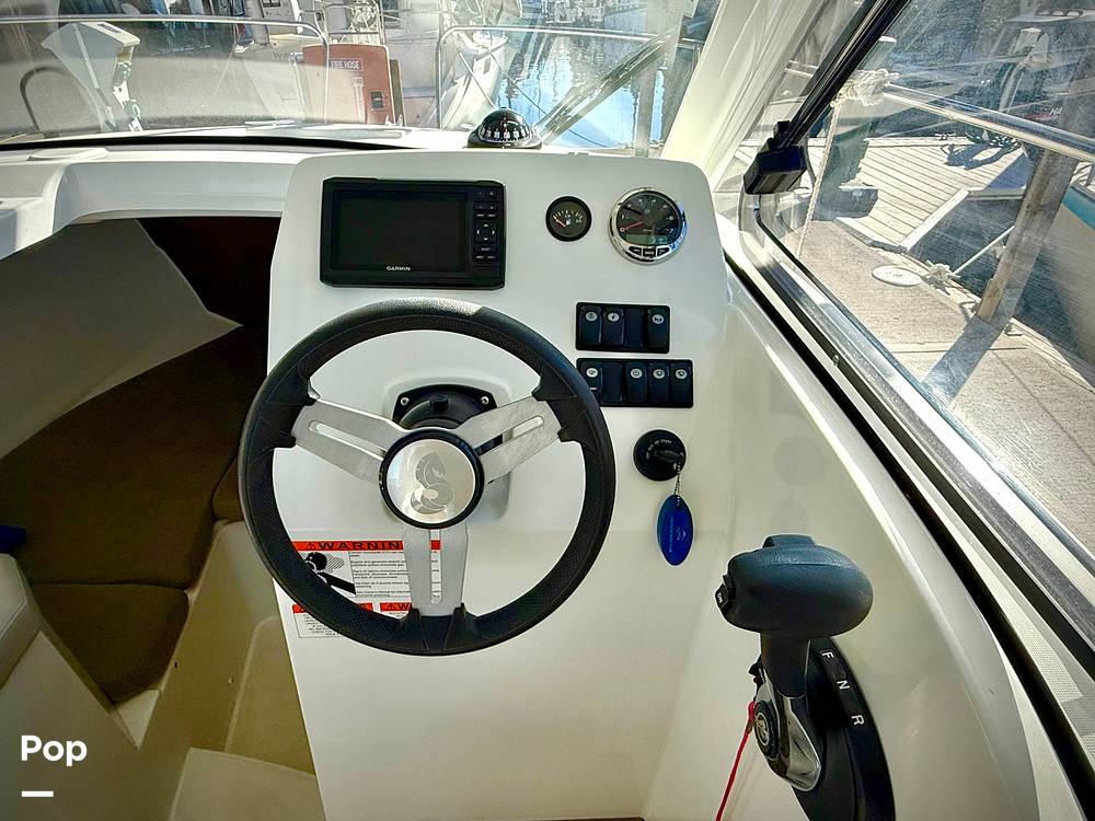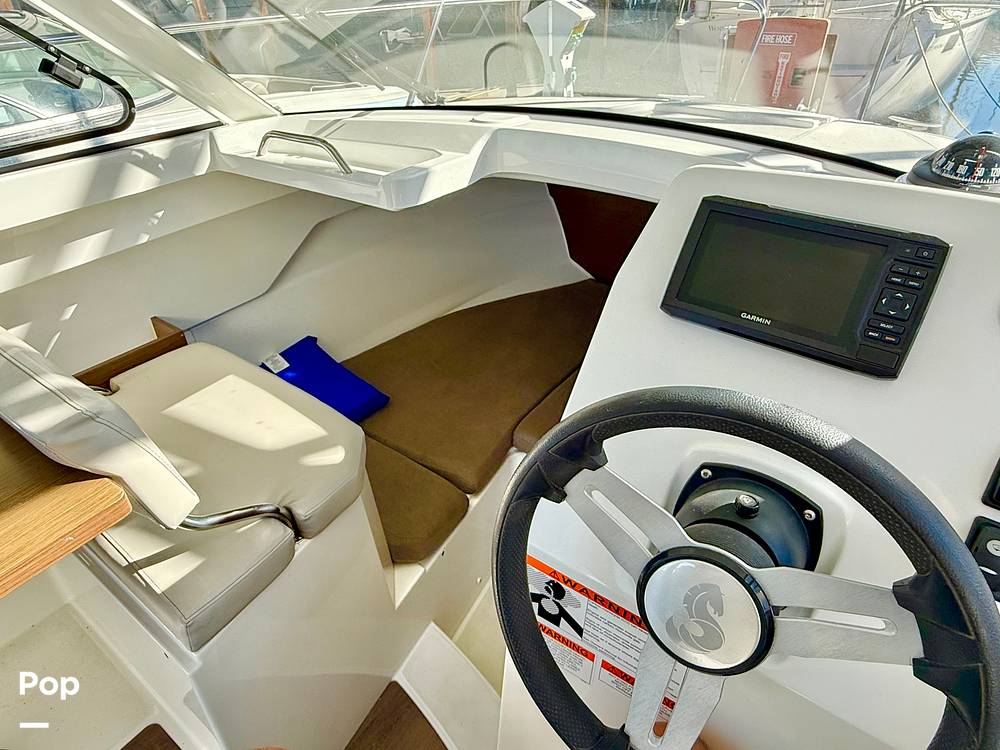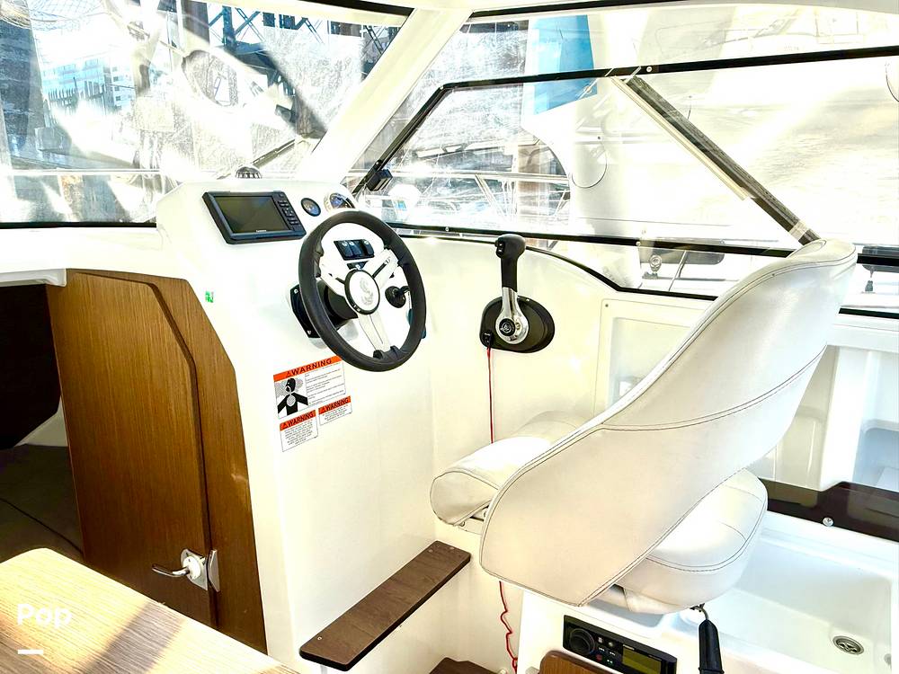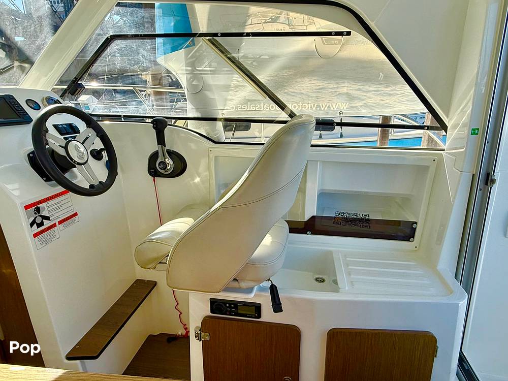 Inside, you'll find thoughtful amenities including a forward berth for overnight stays, a convertible dinette that creates an additional sleeping area, a compact galley with a built-in sink, and a private head compartment. Measuring just under 25 feet in length, this Antares 7 offers year-round versatility, making it the ideal boat for weekend getaways, fishing excursions, and comfortable cruising in all seasons.
